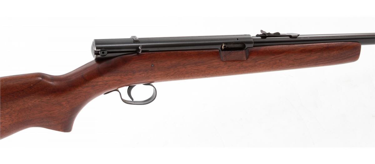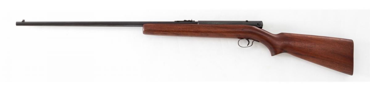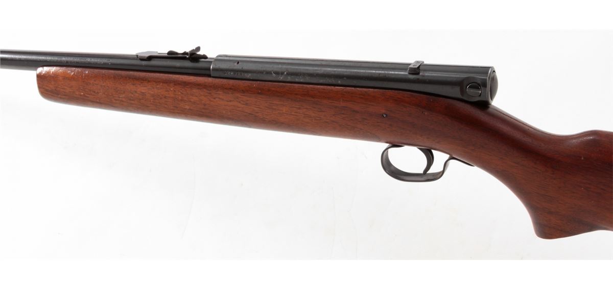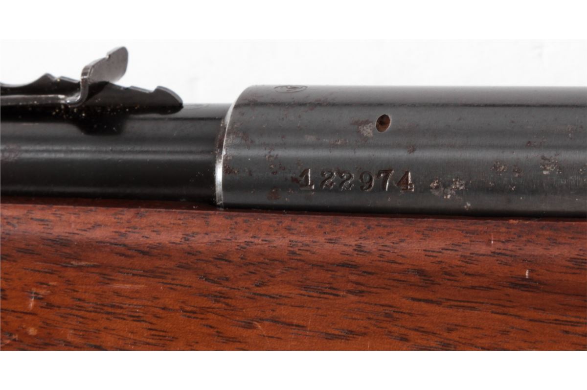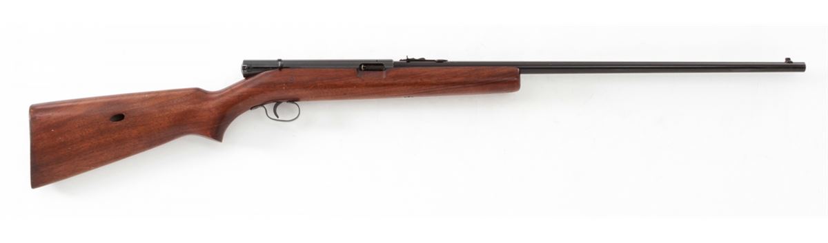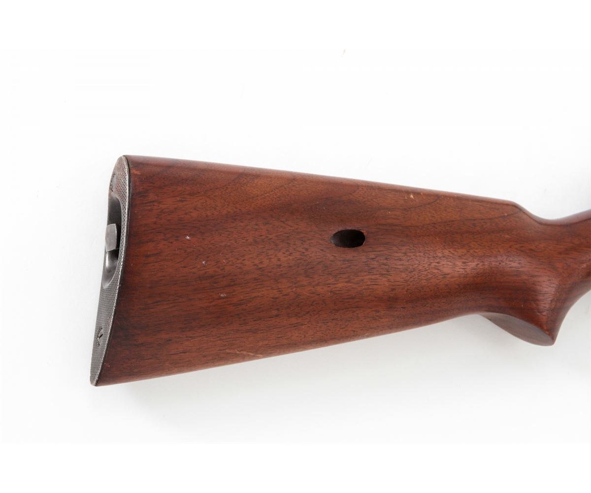 Winchester Model 74 Semi-Automatic Rifle, #122974, .22 Short cal., 24'' barrel, blue finish, smooth walnut stock. Condition is very good to near fine retaining approx. 92% blue with light scuffs and scratches to metal. Minor light surface corrosion. Stock with light scuffs and scratches to both sides. Good action, bright bore. Seldom seen in .22 Short. Est.: $200-$400. (C&R)