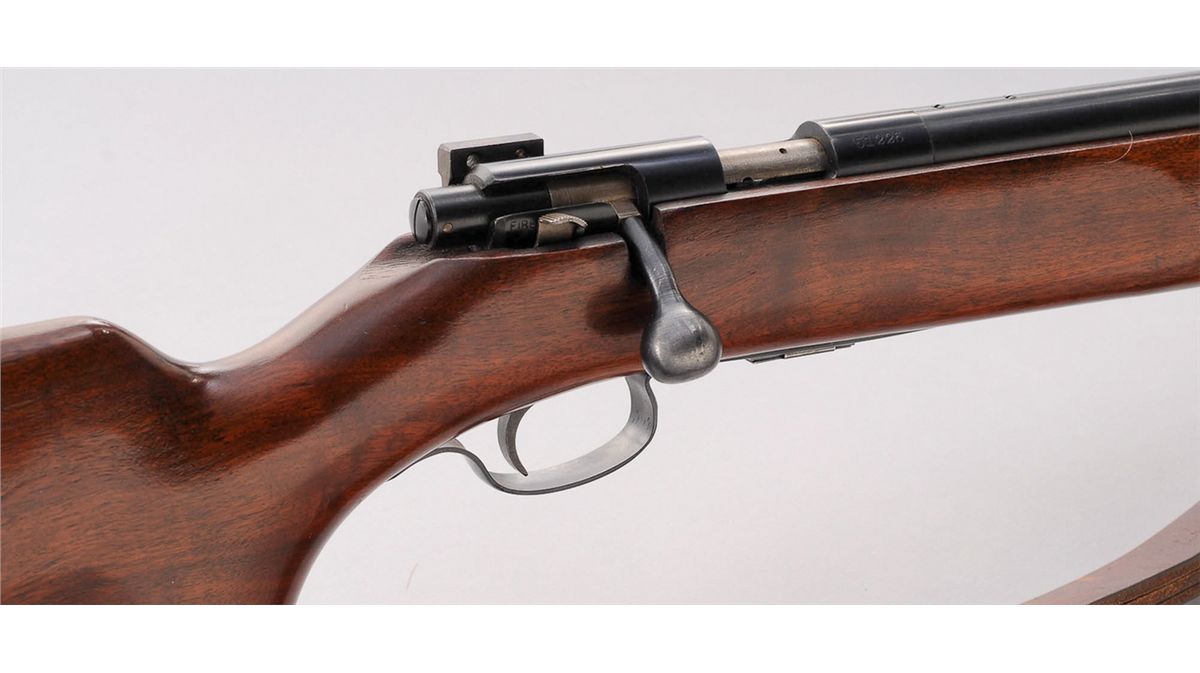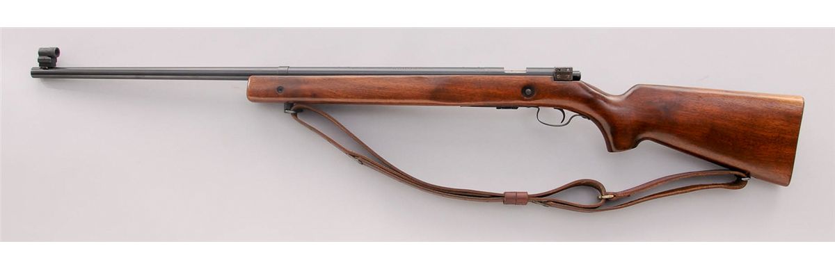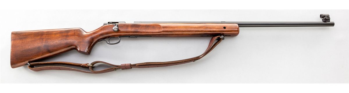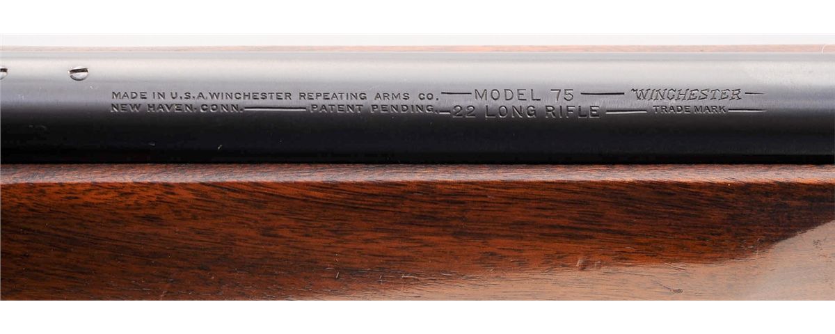Winchester Model 75 Bolt Action Rifle, #51226, .22 LR cal., 28'' barrel, blue finish, walnut stock, globe front sight, factory mount for rear receiver sight, with leather sling. Mfg'd 1948. Condition is excellent showing only light use. Action is crisp, bore is bright. Est.: $500-$750. (C&R)