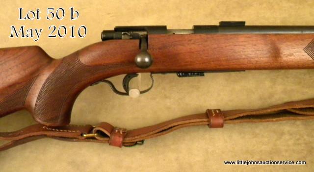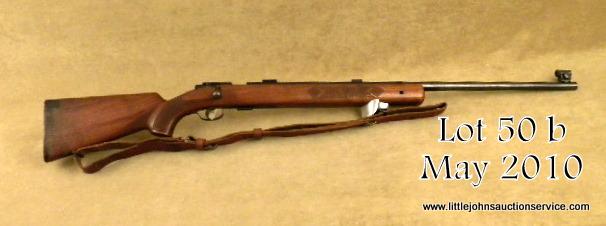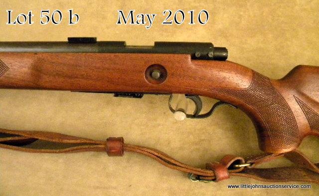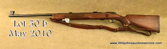 Winchester Model 75 bolt-action target rifle, .22LR cal., 28” round barrel, blue finish, checkered wood stocks, #5484. This gun is in overall good condition showing the majority of its original blue finish with some spots of erosion;magazine present, scope mounts on barrel, steel butt plate, leather sling, bore should clean to good; hooded front sight. Est.: $100-$200.