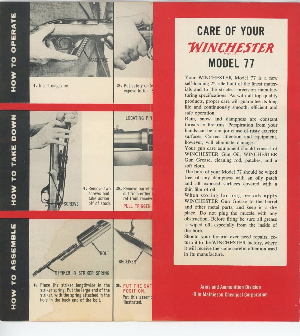 Instructions for your Model 77 Automatic Self Loading Rifle. Form number 2200. Nice original example.