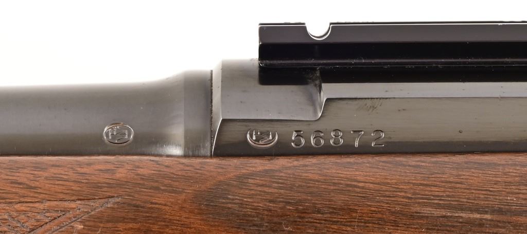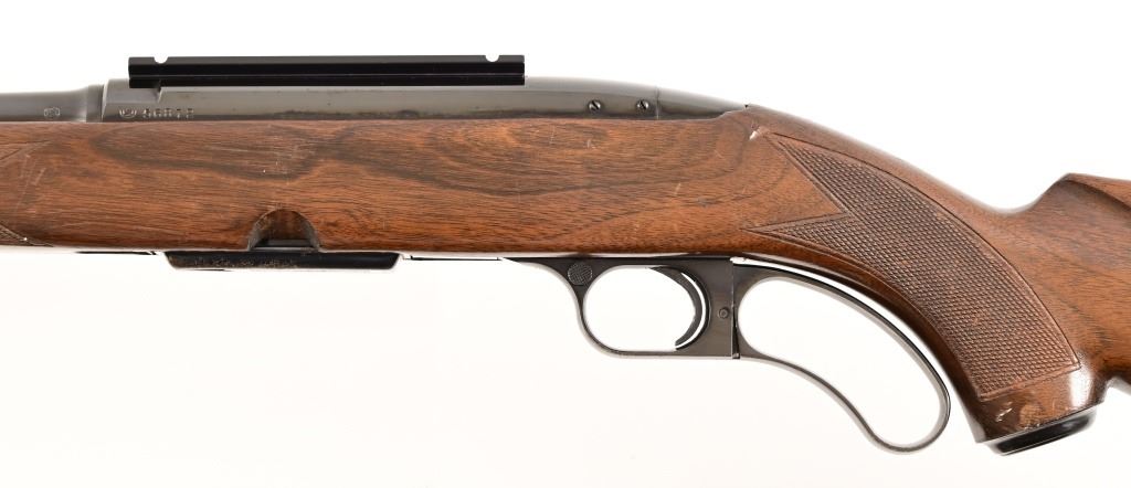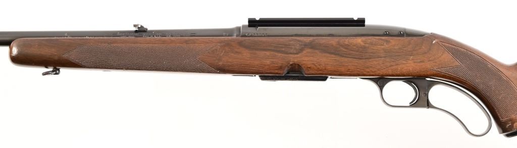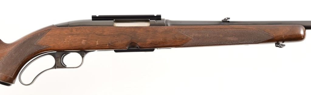 S/N 56872. Checkered wood stock, 22" barrel. Made in 1958. Has scope base installed. Modern