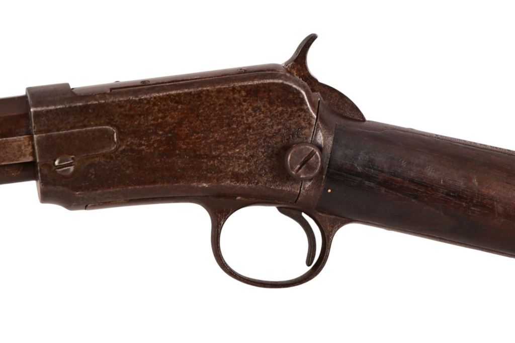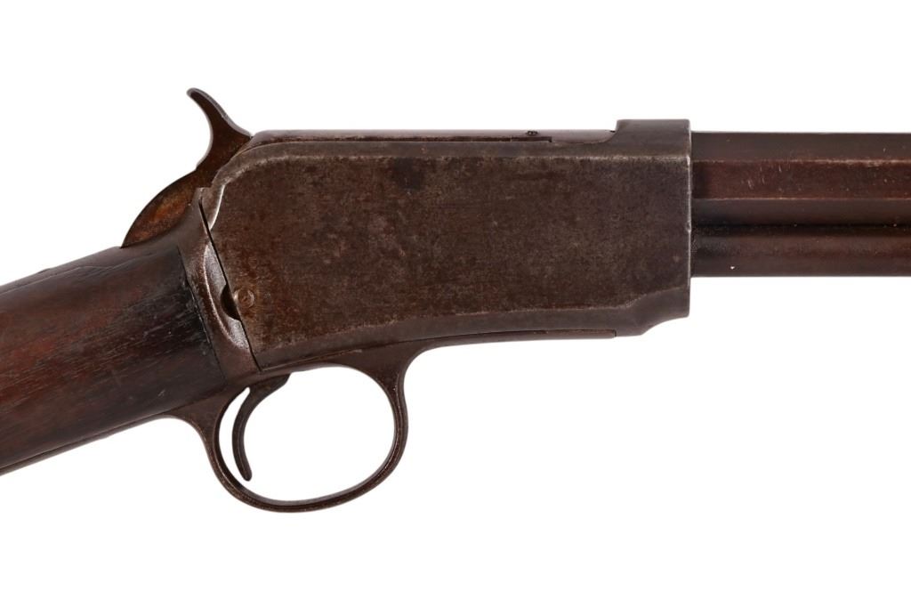 SN 129979, Made in 1902. 24" barrel, very dark bore. Working action. Metal is gray patina with some surface rust. Wood is solid with nicks and handling marks. Modern.