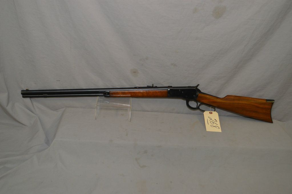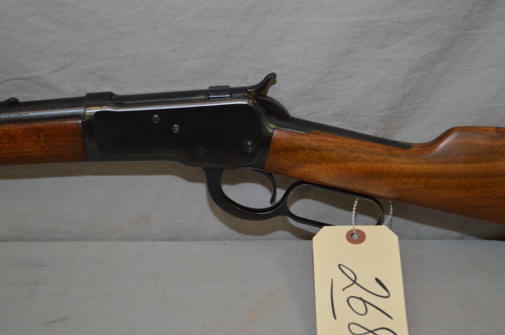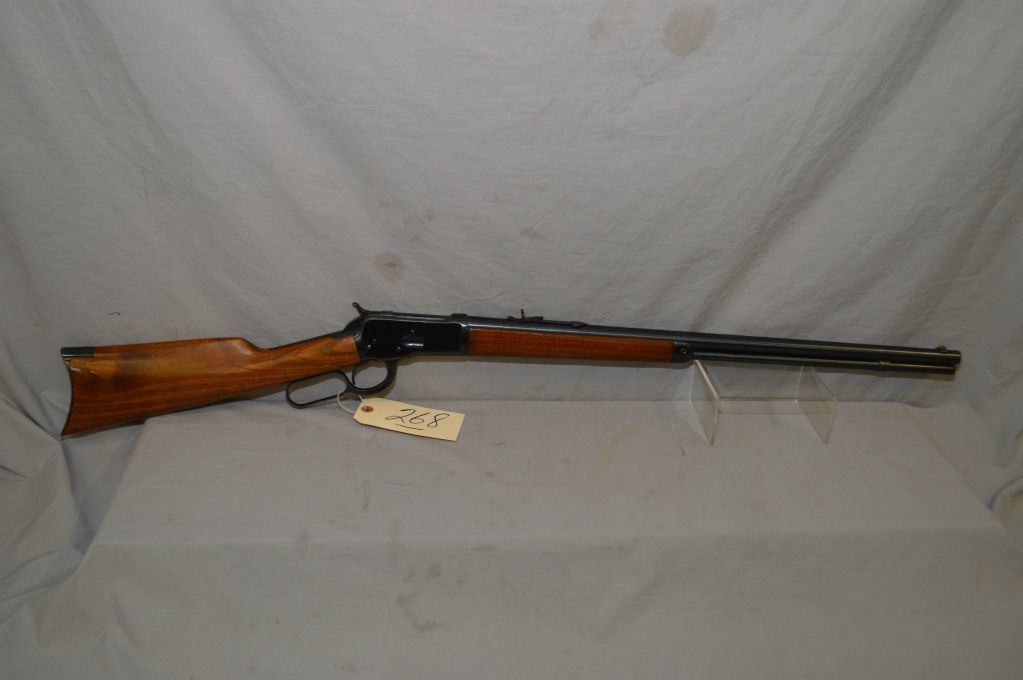 Winchester Model 92 .25 - 20 Cal Lever Action Rifle w/ 24" rnd bbl full mag [ refinished, blued finish, barrel sights, good walnut stock w/ metal crescent butt plate, forend has small chips by receiver that have been lightly sanded, Circa 1906 ] Ser # 370177