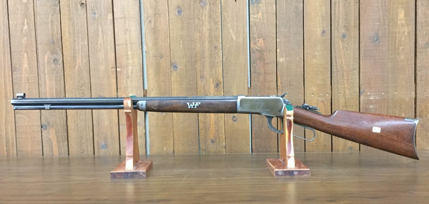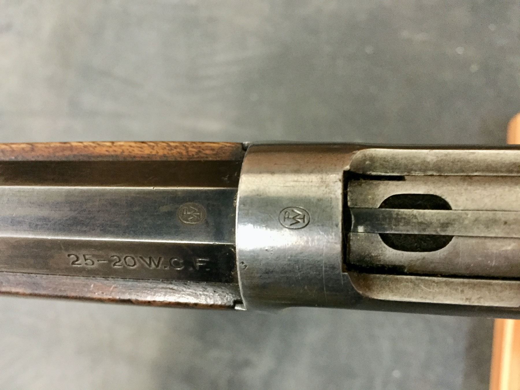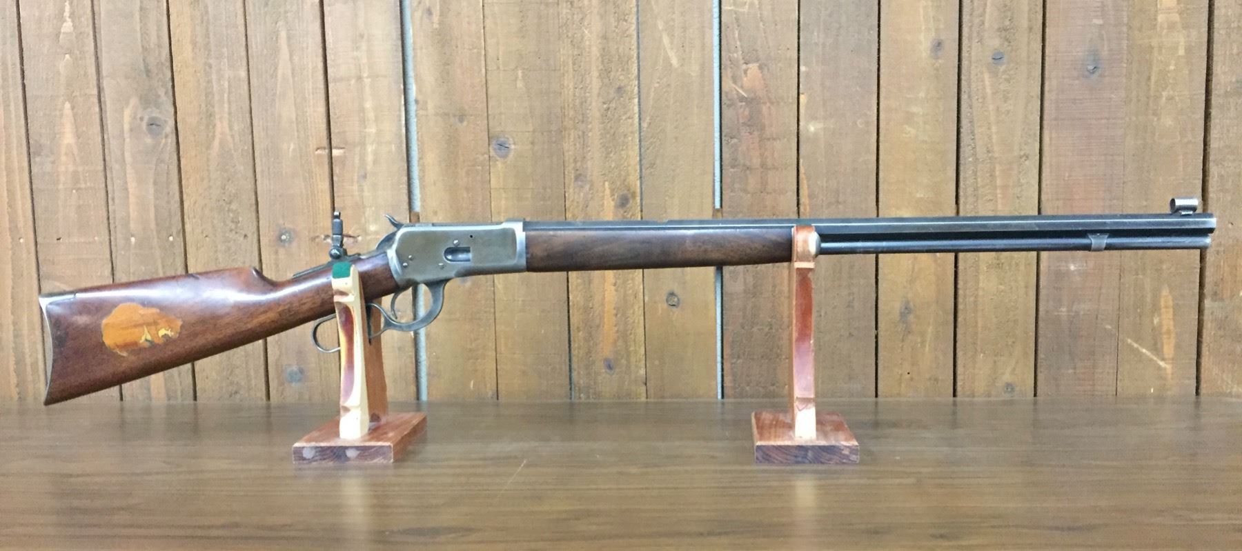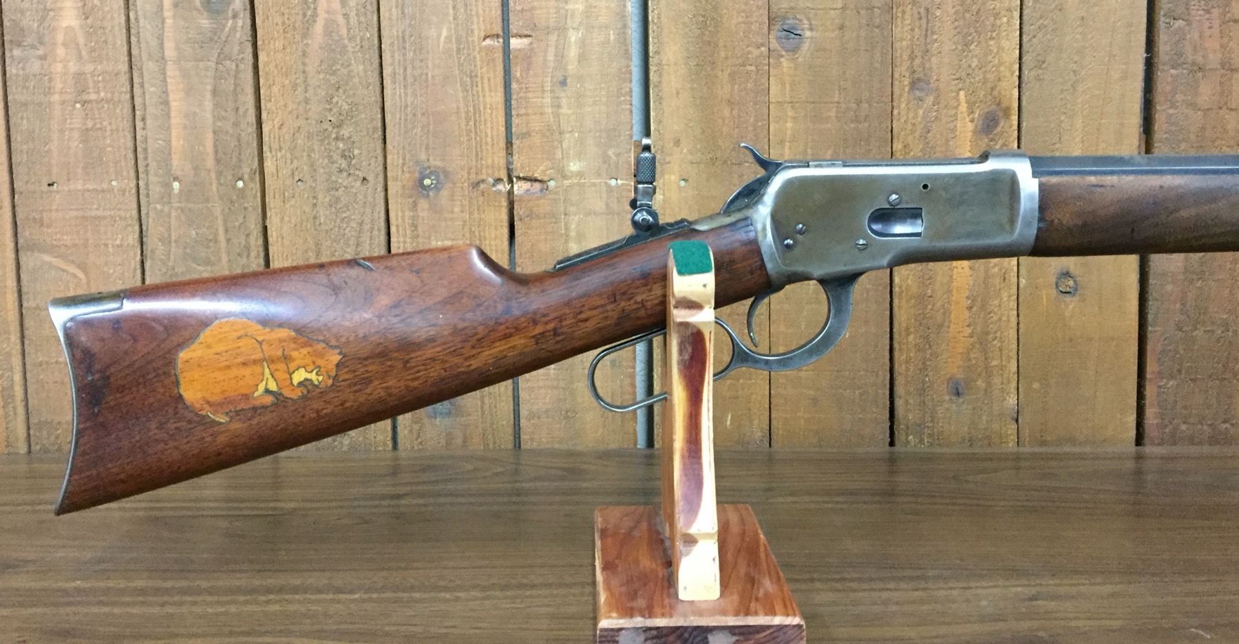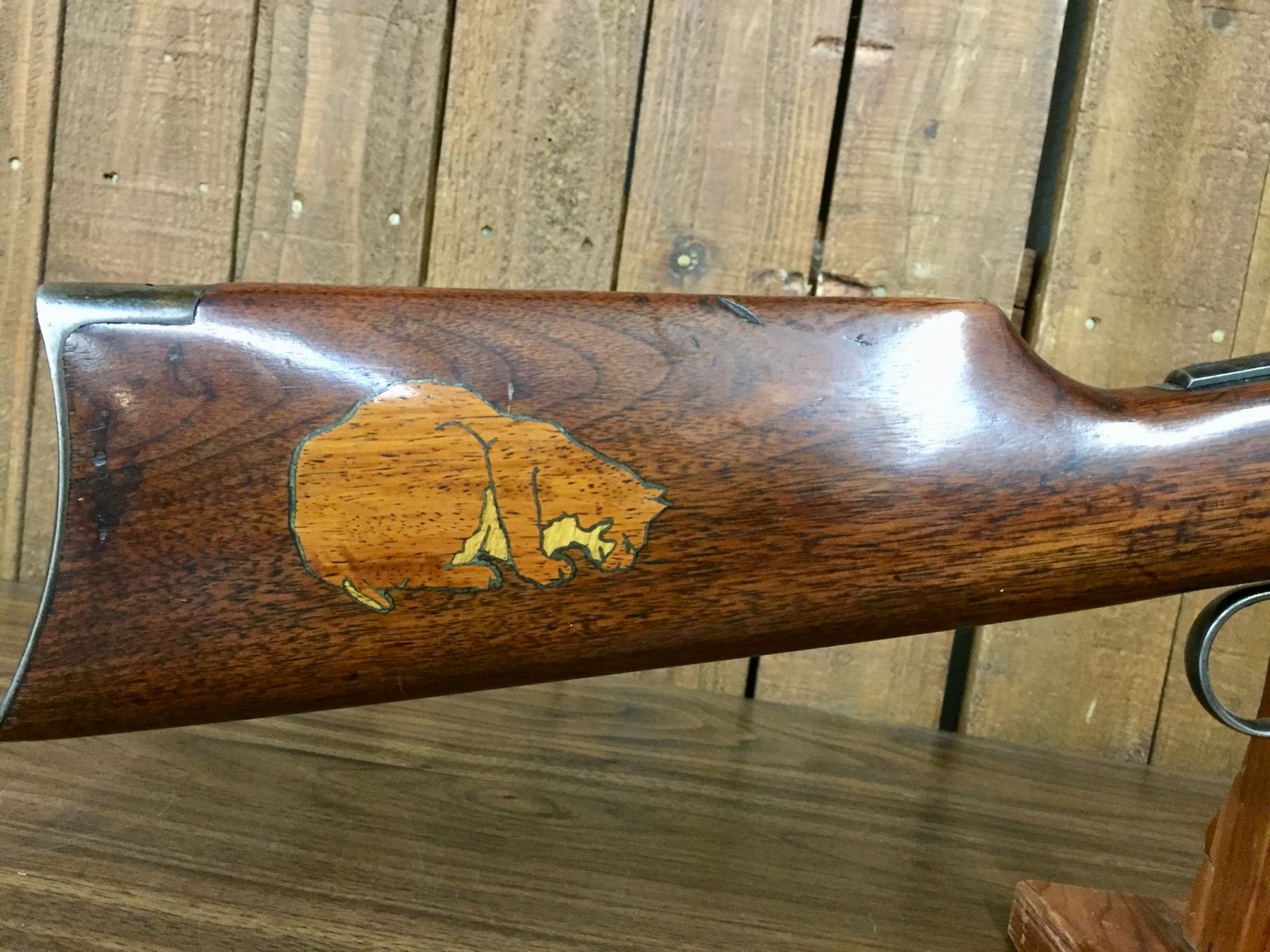 Description: Presented for sale in this lot is a Winchester, Model 92 in .25-20 WCF caliber. This lever action rifle has a Lyman sight on the tang and a front peep sight. The original walnut stock has been inlaid with a cat on the left side and the forearm has inlaid initials. It has a 24†octagon barrel and a full magazine. Maker: Winchester. Approx. Age: 1923. Serial No. 920822. Size: Barrel measures 24†with an overall length of 47-1/2â€. Condition: Pretty good for its age, normal wear and some dings expected. Please look closely at the pictures - they are an important part of our description. Shipping: There will be a $15 handling / packaging fee for shipping this lot. The actual cost of postage will be added on top of that. *****This firearm REQUIRES an FFL Transfer*****