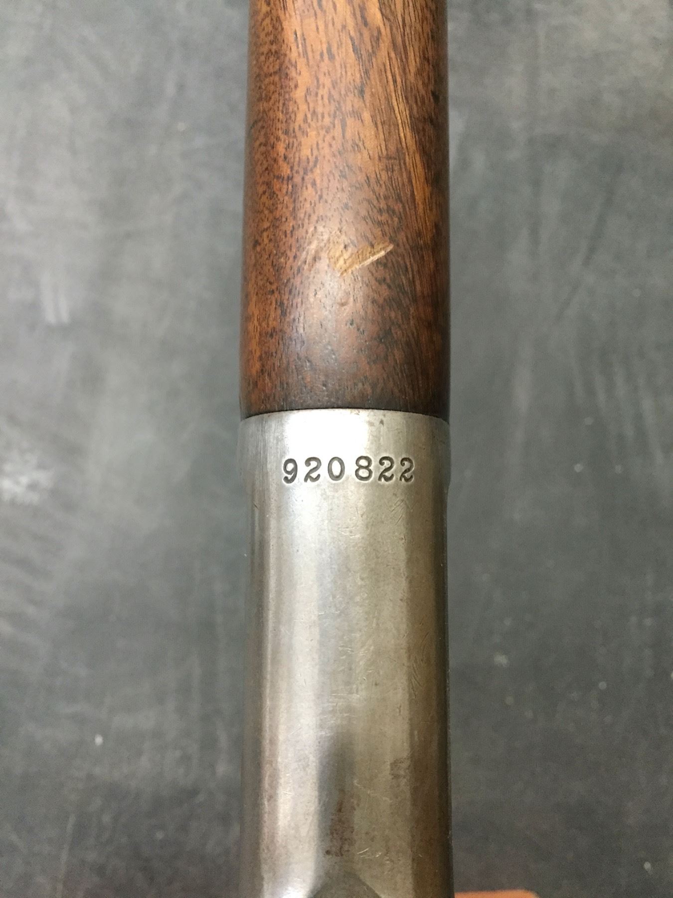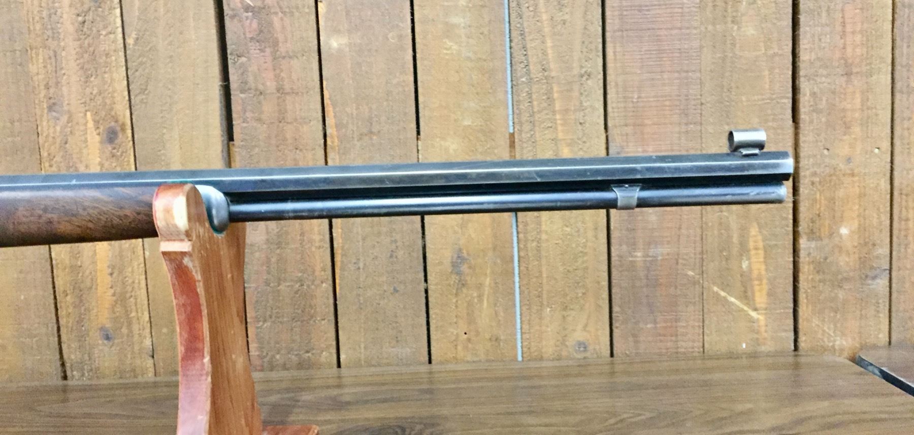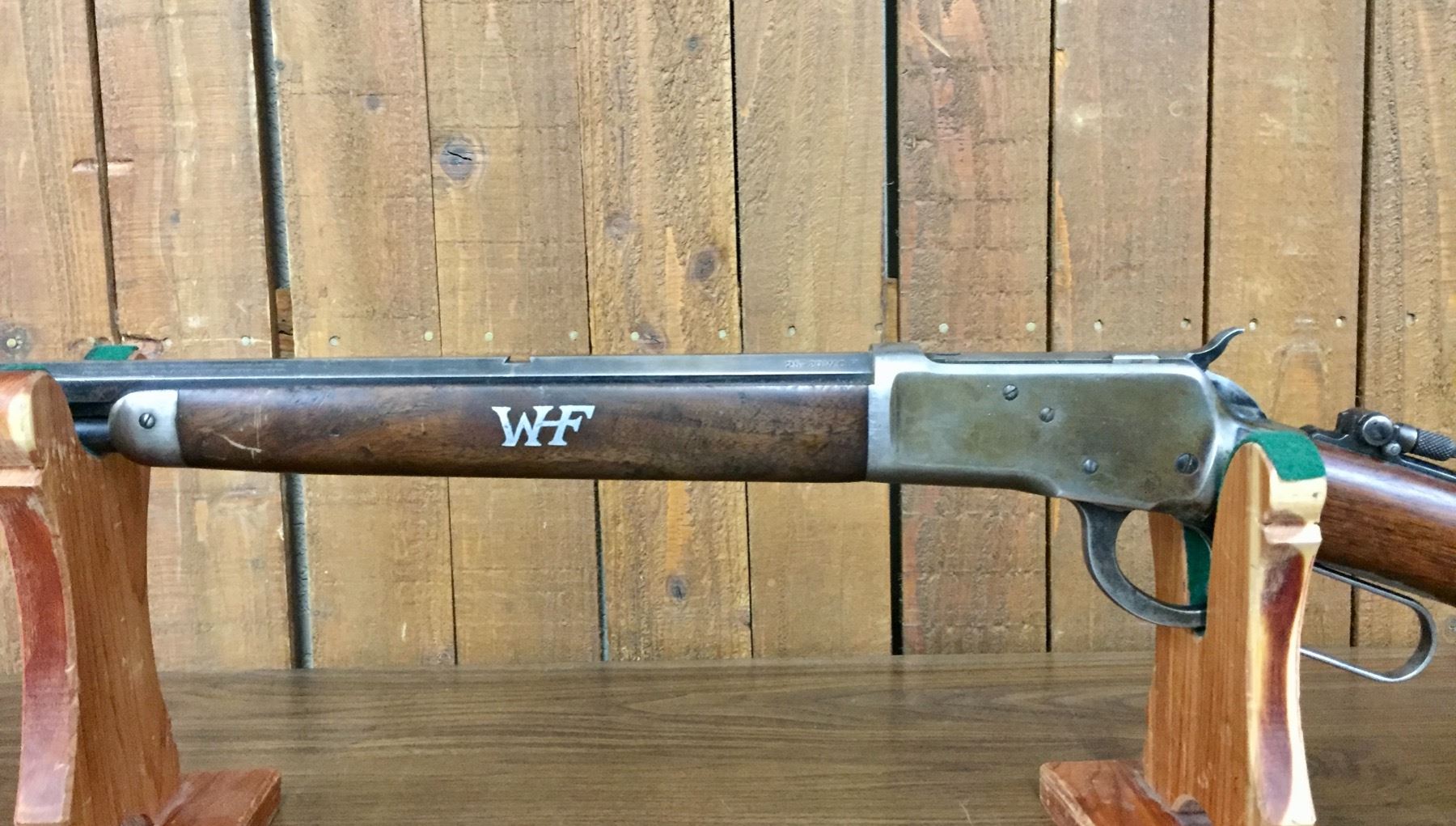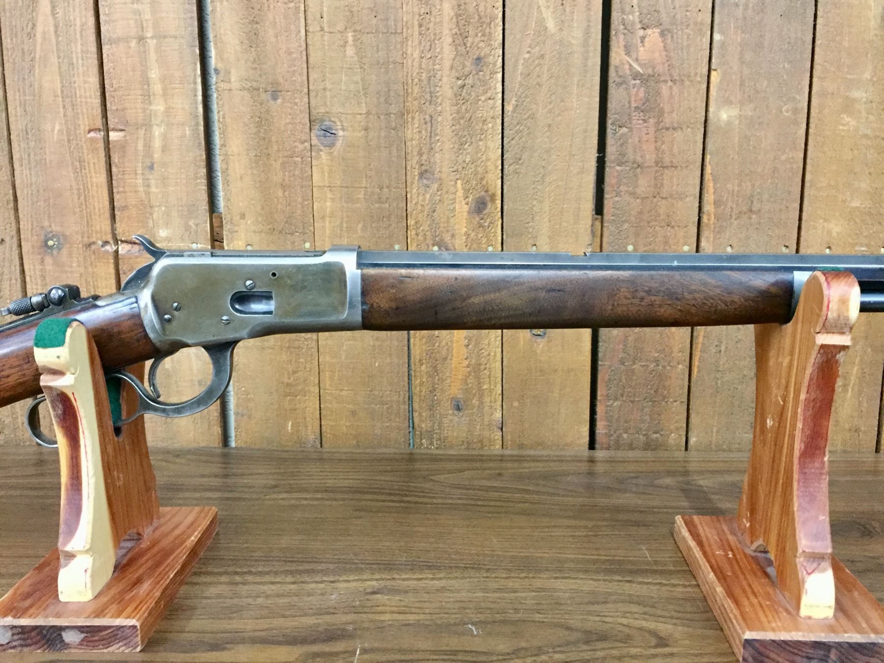 Description: Presented for sale in this lot is a Winchester, Model 92 in .25-20 WCF caliber. This lever action rifle has a Lyman sight on the tang and a front peep sight. The original walnut stock has been inlaid with a cat on the left side and the forearm has inlaid initials. It has a 24†octagon barrel and a full magazine. Maker: Winchester. Approx. Age: 1923. Serial No. 920822. Size: Barrel measures 24†with an overall length of 47-1/2â€. Condition: Pretty good for its age, normal wear and some dings expected. Please look closely at the pictures - they are an important part of our description. Shipping: There will be a $15 handling / packaging fee for shipping this lot. The actual cost of postage will be added on top of that. *****This firearm REQUIRES an FFL Transfer*****
