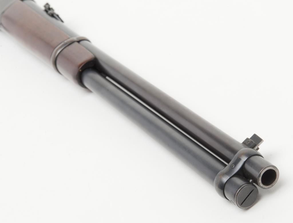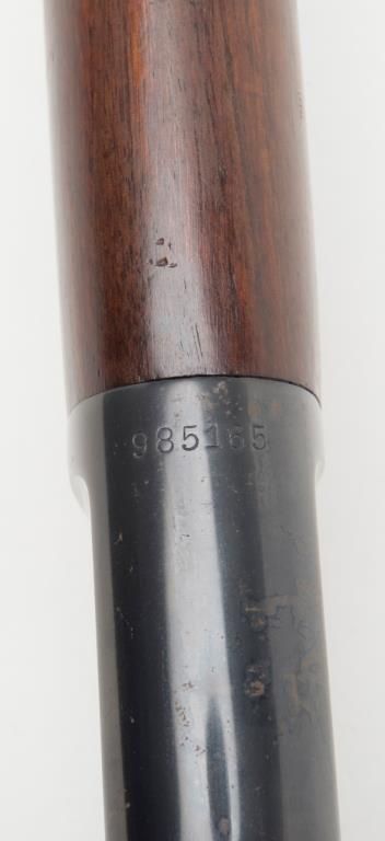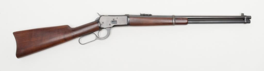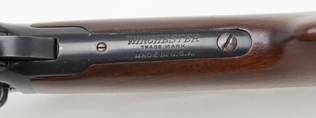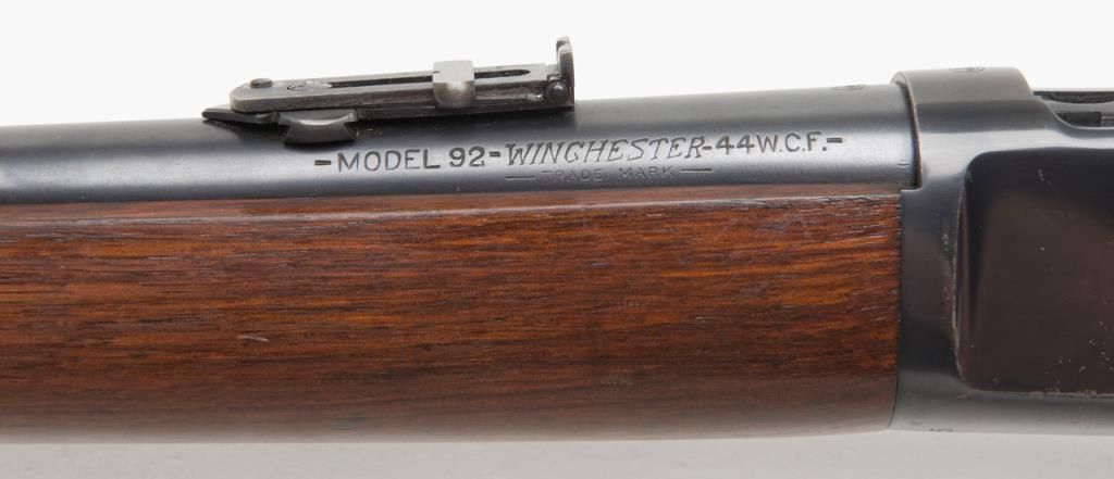 Winchester Model ’92 lever action SRC, .44 W.C.F. cal., 20” barrel, blue finish, wood stocks, #985165 in minty-like condition showing approx. 99%+ original finish, excellent bright bore, crisp action, sharp markings and excellent stocks;saddle ring missing; base for ring present; one of the best conditioned ‘92’s we’ve had the privilege to catalog. From the estate of Joe Kiser. (C&R). Est.: $5,000-$10,000.