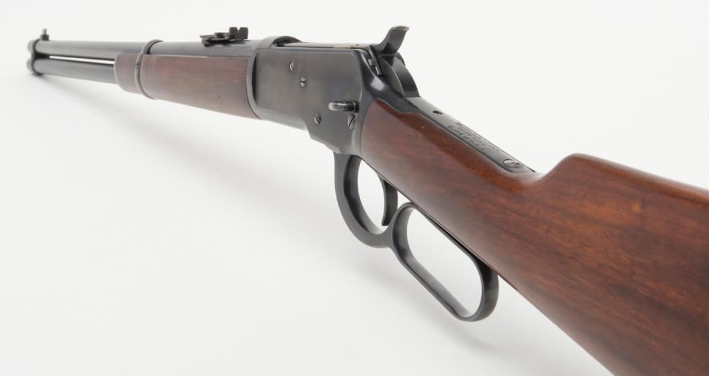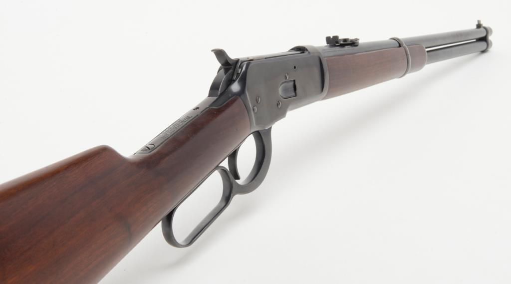 Winchester Model ’92 lever action SRC, .44 W.C.F. cal., 20” barrel, blue finish, wood stocks, #985