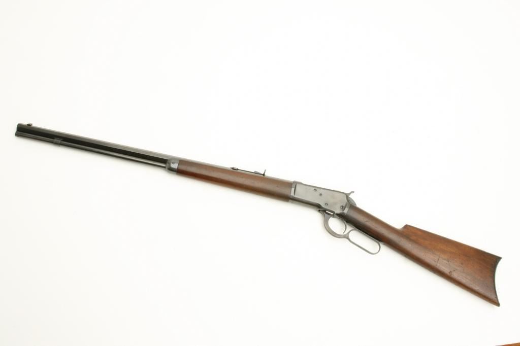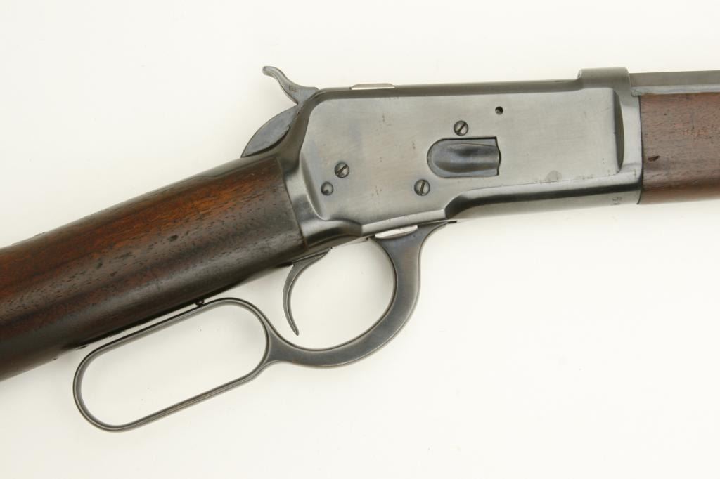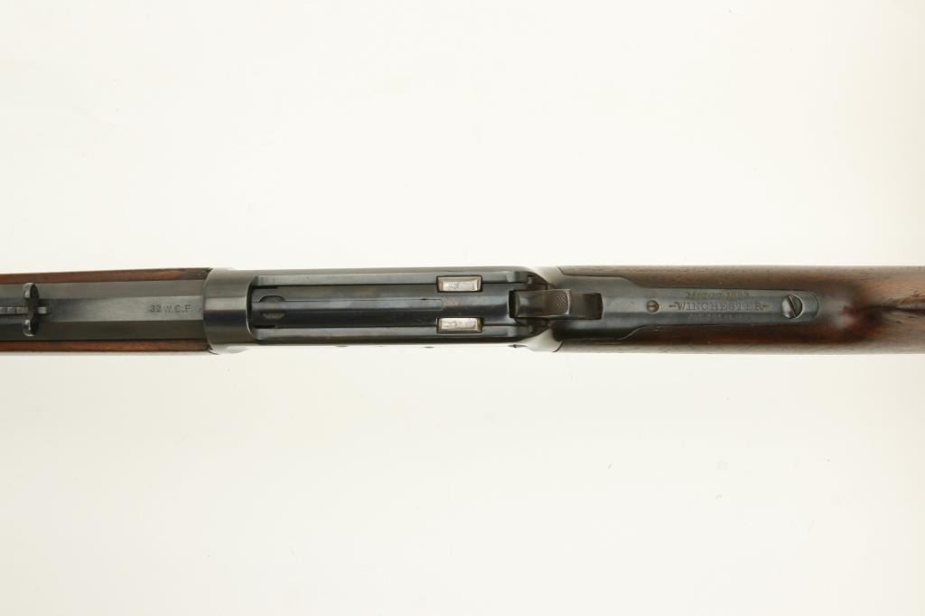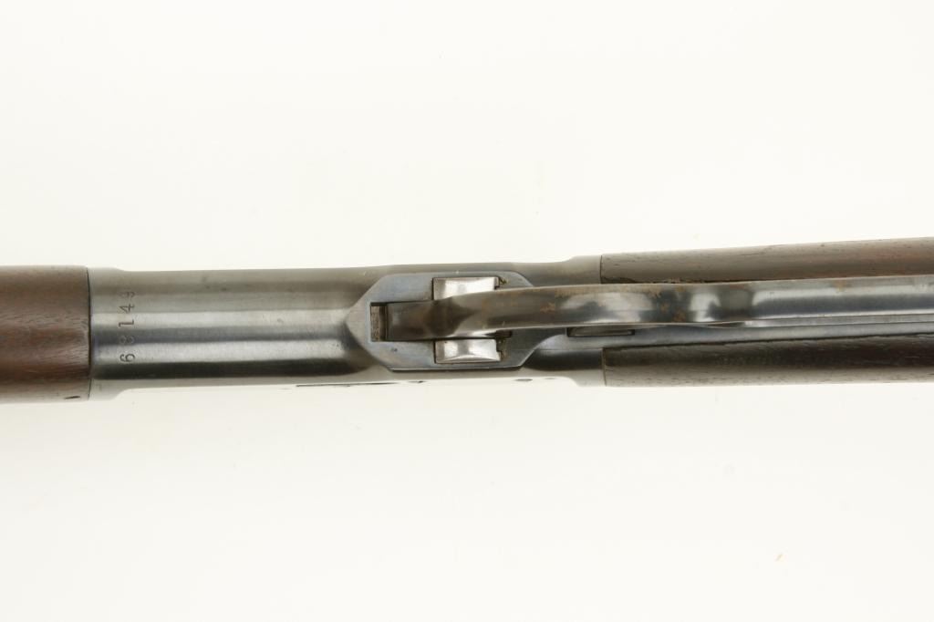 caliber, serial #68149. The rifle is in very good overall condition as re-finished with a 24” octagon barrel. The barrel and magazine retain nearly all of an old, quality re-blued finish. The receiver has some small mars but likewise retains the majority of the re-blue. The smooth wood stocks are in good condition with mars and compression consistent with use. The butt stock ends with a smooth, metal crescent butt plate. The bore is good, the action crisp and markings are sharp. (Antique) Est.: $400-$800