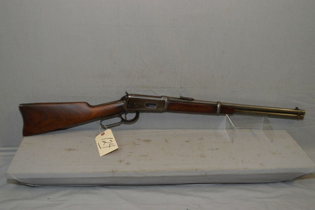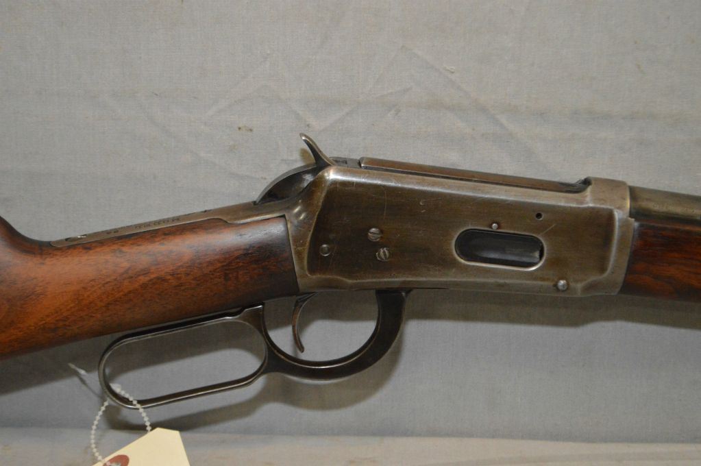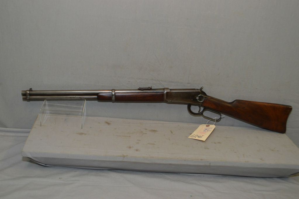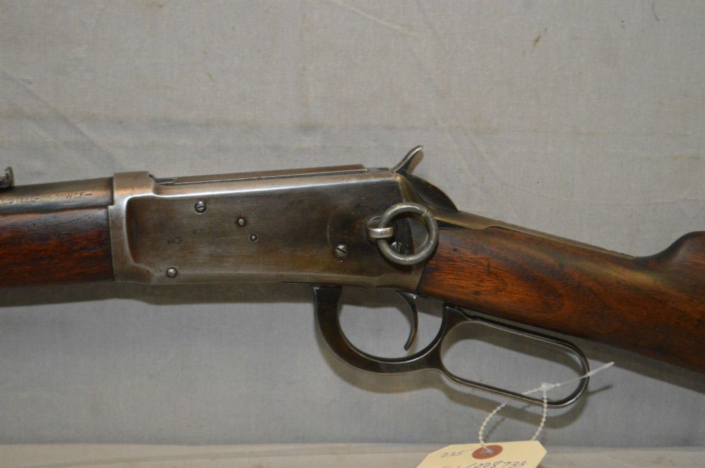 Winchester Model 94 .25 - 35 WCF Cal Lever Action Saddle Ring Carbine w/20" bbl [ fading blue finish to grey in some areas, good wood with small chip left side by upper tang, metal carbine butt plate, Circa 1927 ] Ser # 1008733