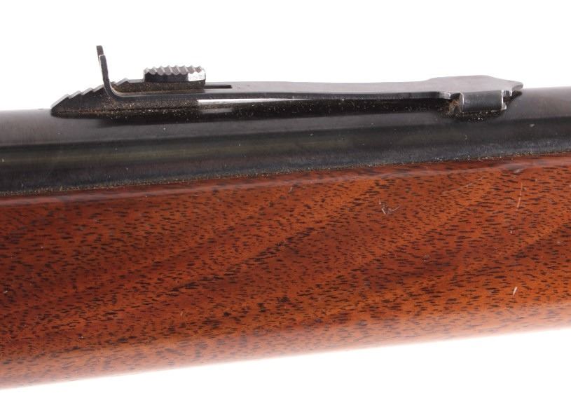 This is a Winchester Model 94 lever action carbine rifle chambered in the .30-30 caliber manufactured in 1980. The rifle features a blued steel barrel and receiver with solid walnut hardwood stocks and open sporting sights. The barrel is marked "Winchester Model 94 30-30 Win.". The Winchester rifle is in good condition showing very little wear. The rifle measures 34" long with a 16" barrel. This firearm requires an FFL or NICS background check for transfer. Serial number 4870842