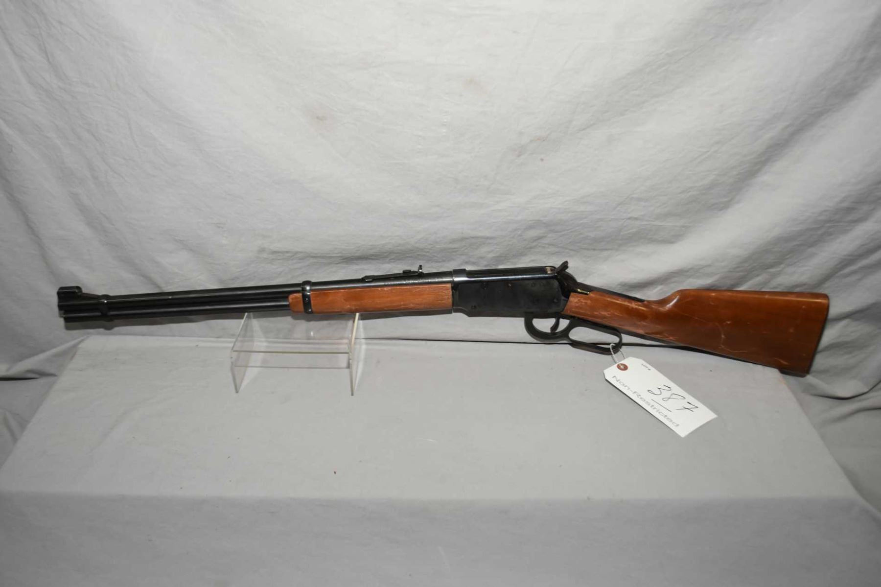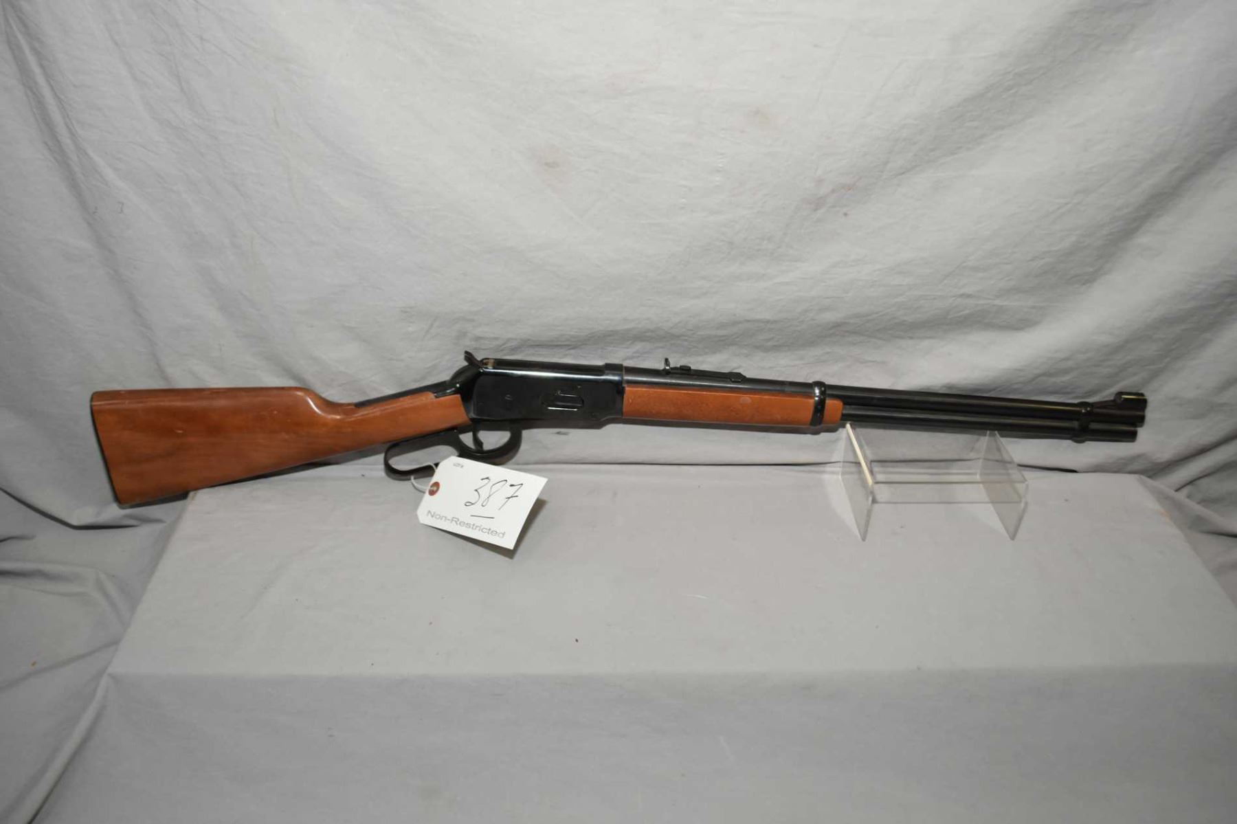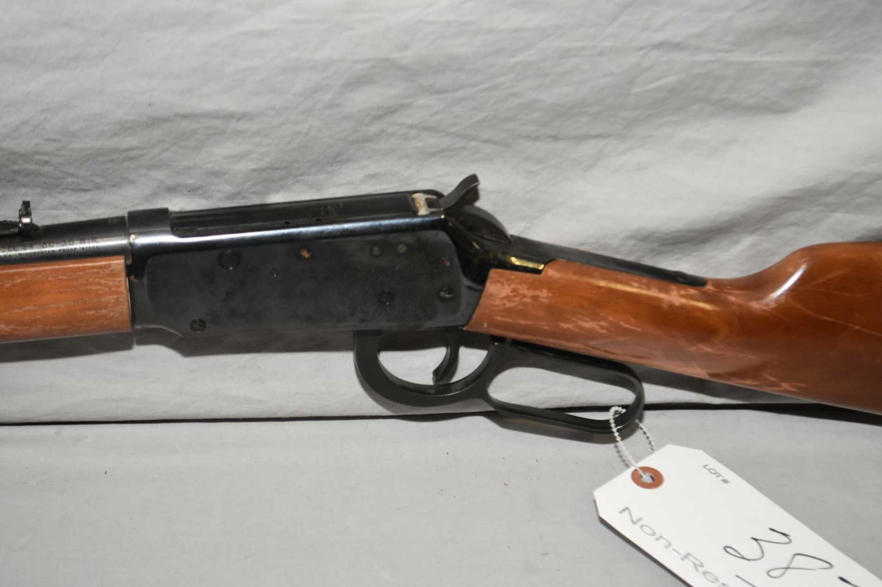 Winchester Model 94 .30 - 30 Win Cal Lever Action Rifle w/ 20" bbl [ blued finish, with some slight surface rust to metal and scratches, good wood w/ some marks, scratches and flaking varnish, checkered metal butt plate, Circa 1971 ] Ser # 3474052