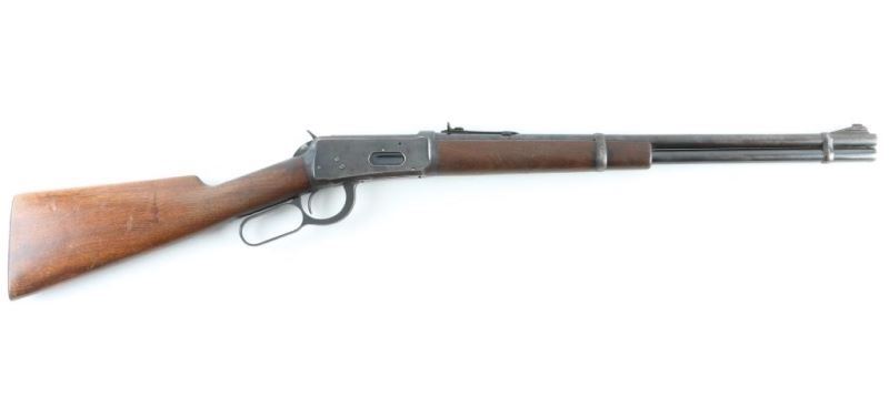Rifle. Lever-Action. 5-rd tube magazine. Manufactured 1940. 20" round barrel with serrated ramp, post/bead front, and adjustable u-notch rear sights. Bore appears very good with strong rifling, but dirty. Lever-action is smooth/tight. All markings are crisp/clear. Walnut stock/forearm are good with minor scratches/dings. Steel buttplate. Blued finish is about 60% with handing loss/edge wear, and some pin-prick spots of surface rust. Nothing serious, NRA Condition-Good. C&R Firearm.