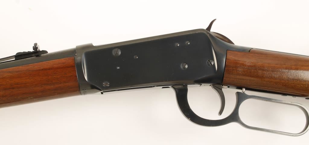 Refinished lever action sporting rifle chambered in .32 Winchester Special and manufactured in 1965. Features a 20" blued barrel, full tubular magazine, hooded ramped front sight, rear sporting sight, lever safety, walnut forend & straight grip stock with checkered buttplate, blued receiver, hammer, trigger & lever. Bore is good, action is smooth and metal buttplate has rust. Condition is very good as refinished. ***Modern Firearm***