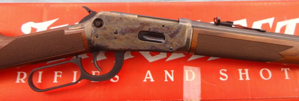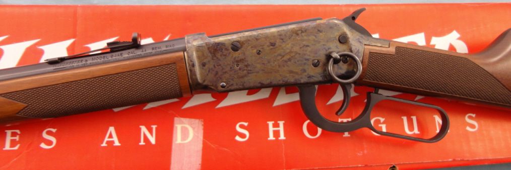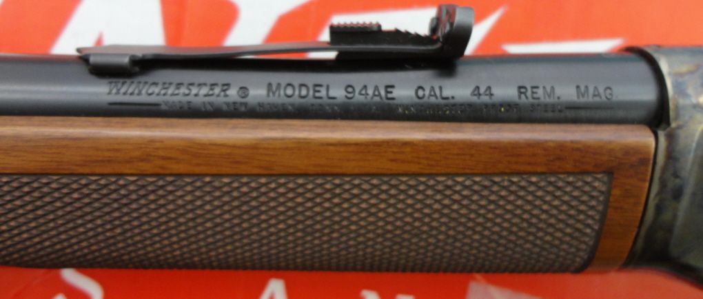 #6252020; 44 Mag. w/20" bbl. Case colored receiver, saddle ring & checkered walnut stock. Angle eject model & condition is as new w/original box.