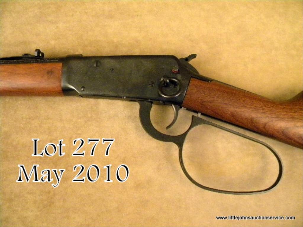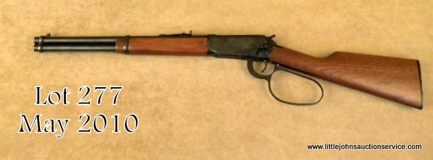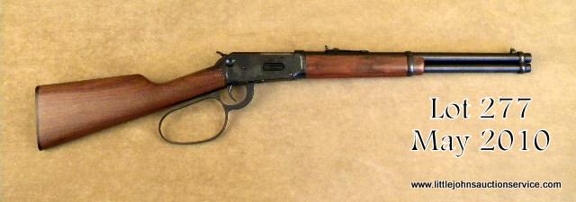 Winchester Model 94 AE lever action SRC with large loop lever, .44 Rem. Mag. cal., 16” barrel, blue finish, wood stocks, #6224922. This gun is in overall fine condition showing little use or handling with approx. 99% original finish on metal surfaces, fine bore, crisp action, sharp markings and excellent wood with just a couple slight mars from storage. Est.: $250-$500.