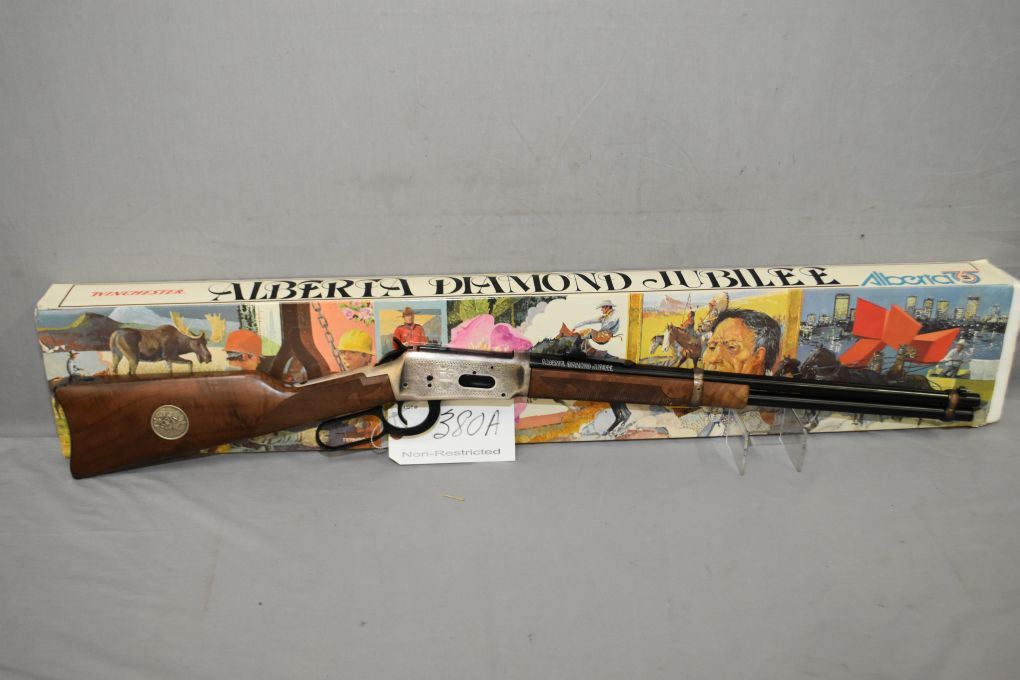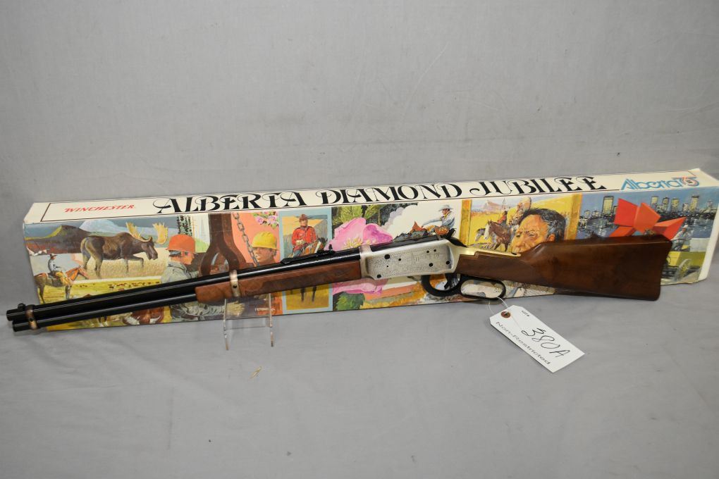 Winchester Model 94 Alberta Diamond Jubilee Standard Commemorative .38 - 55 Cal Lever Action Rifle w/ 20" bbl [ appears as new, unfired in original box w/shipping carton, blued finish, slightly tarnished silver receiver, with checkered stock & forend ] Ser # ADJ 2082