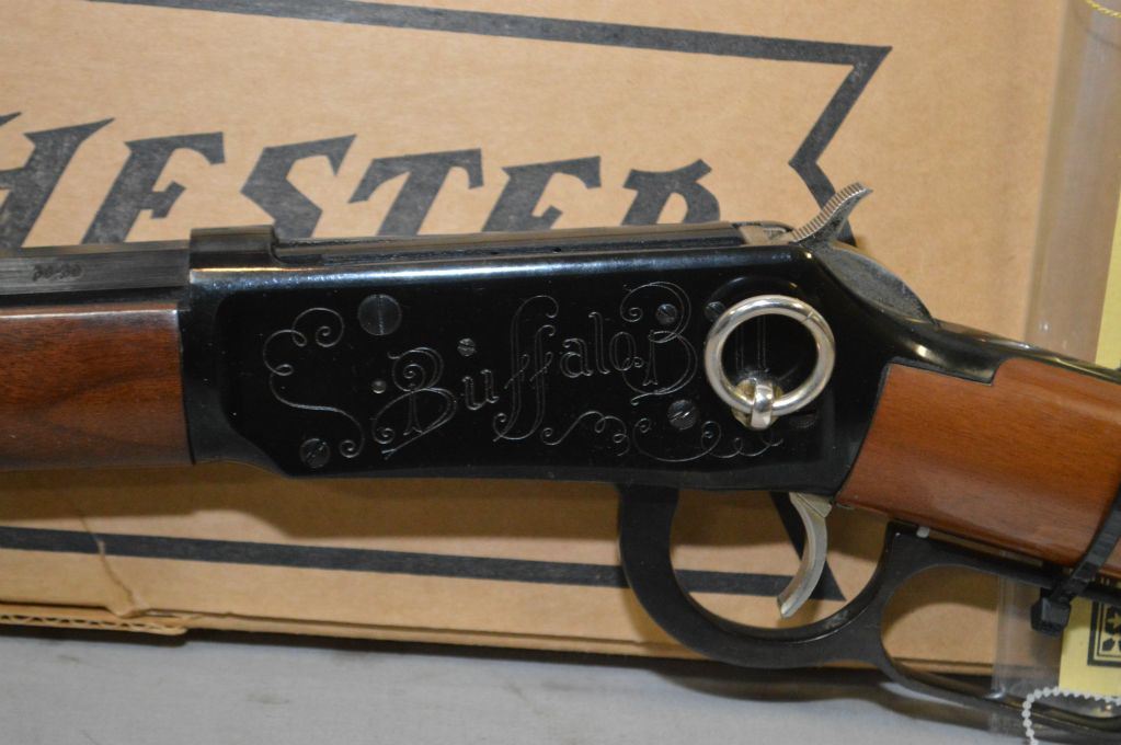 Winchester Model 94 Buffalo Bill Commemorative .30 - 30 Cal Lever Action Rifle w/26" octagon bbl [ appears as new, unfired in original box w/booklet, hanging tag, etc., blued finish, engraved receiver, with saddle ring ] Ser # WC 16575
