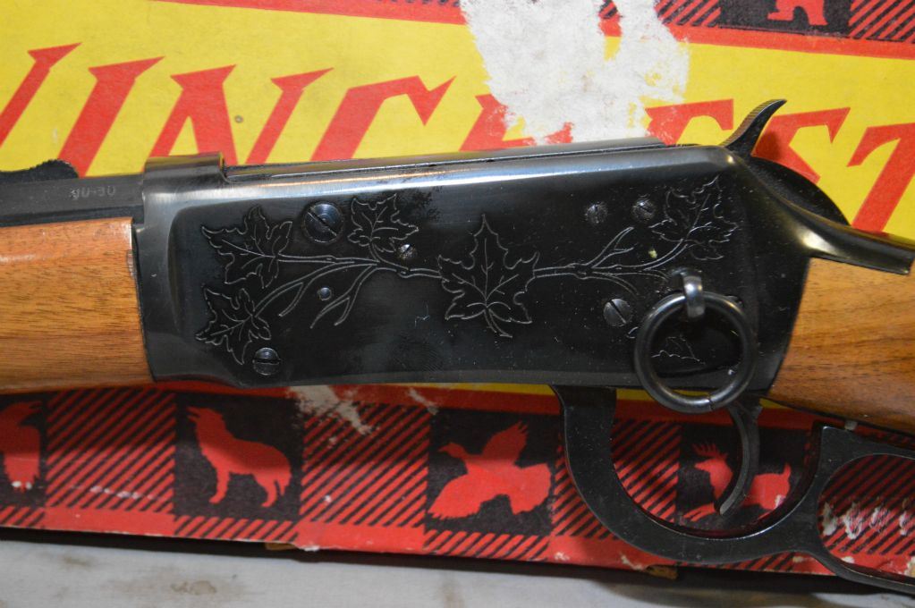 Winchester Model 94 Canadian Centennial 67 Commemorative .30 - 30 Cal Lever Action Saddle Ring Carbine w/ 20" octagon bbl [ appears as new, unfired in original box, w/ instruction booklet, hanging tag, blued finish, lightly engraved receiver, barrel marked Canadian Centennial 1867 - 1967, note : some damage to the box ] Ser # 1973