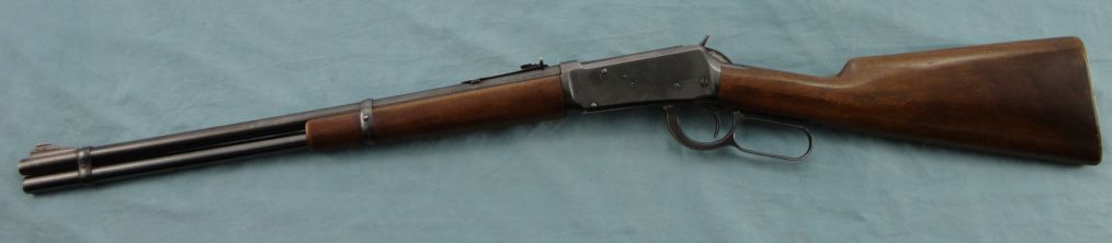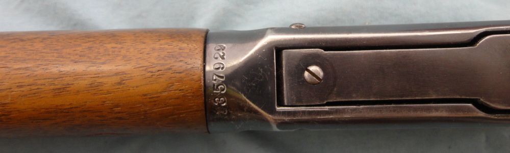 #1357929; 32WS. Std. Carbine Config. Pre 64 Carbine Mfg. in 1940's. Very good original blue remains, fading on edges. Some small scratches mainly on bottom of receiver. Good stock w/regular marks from use.