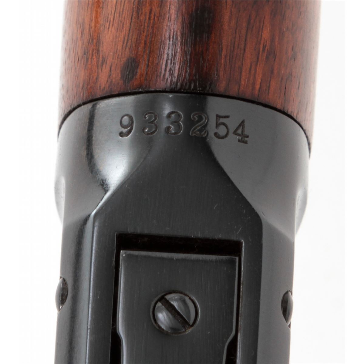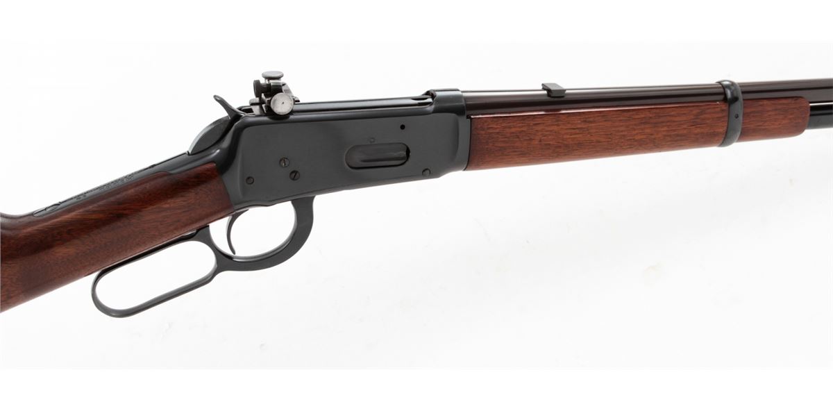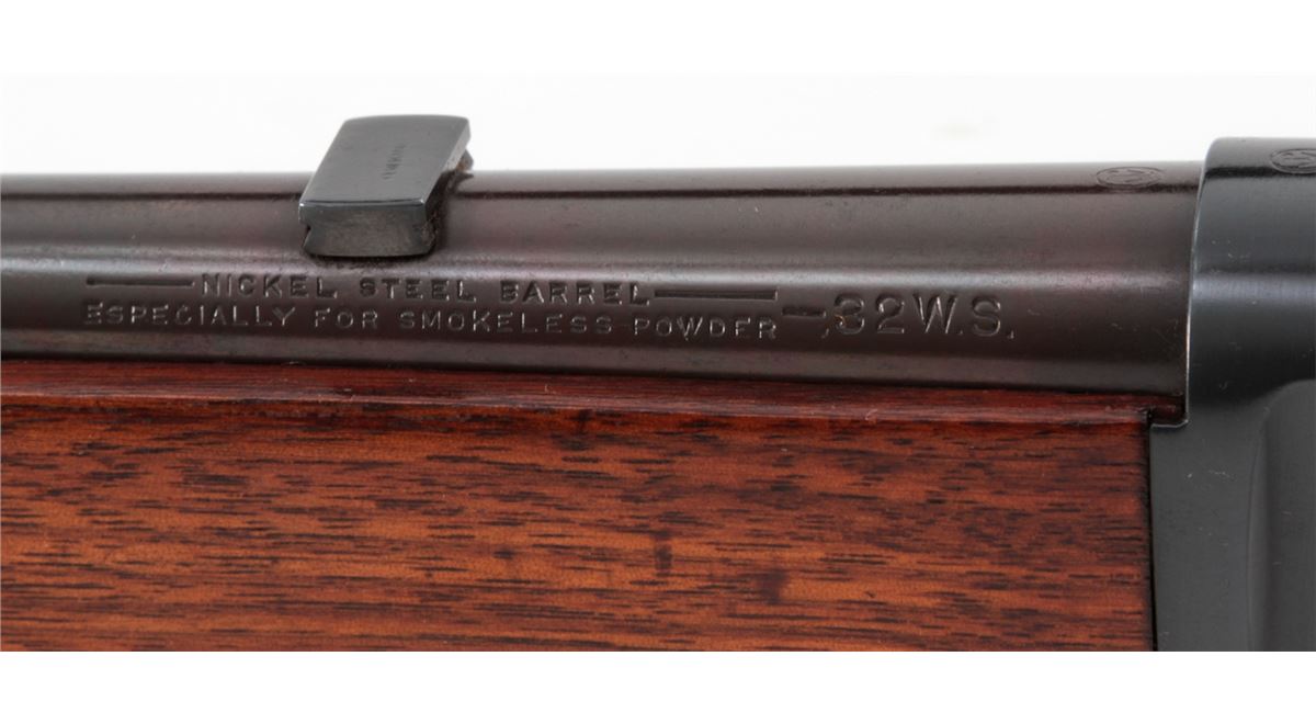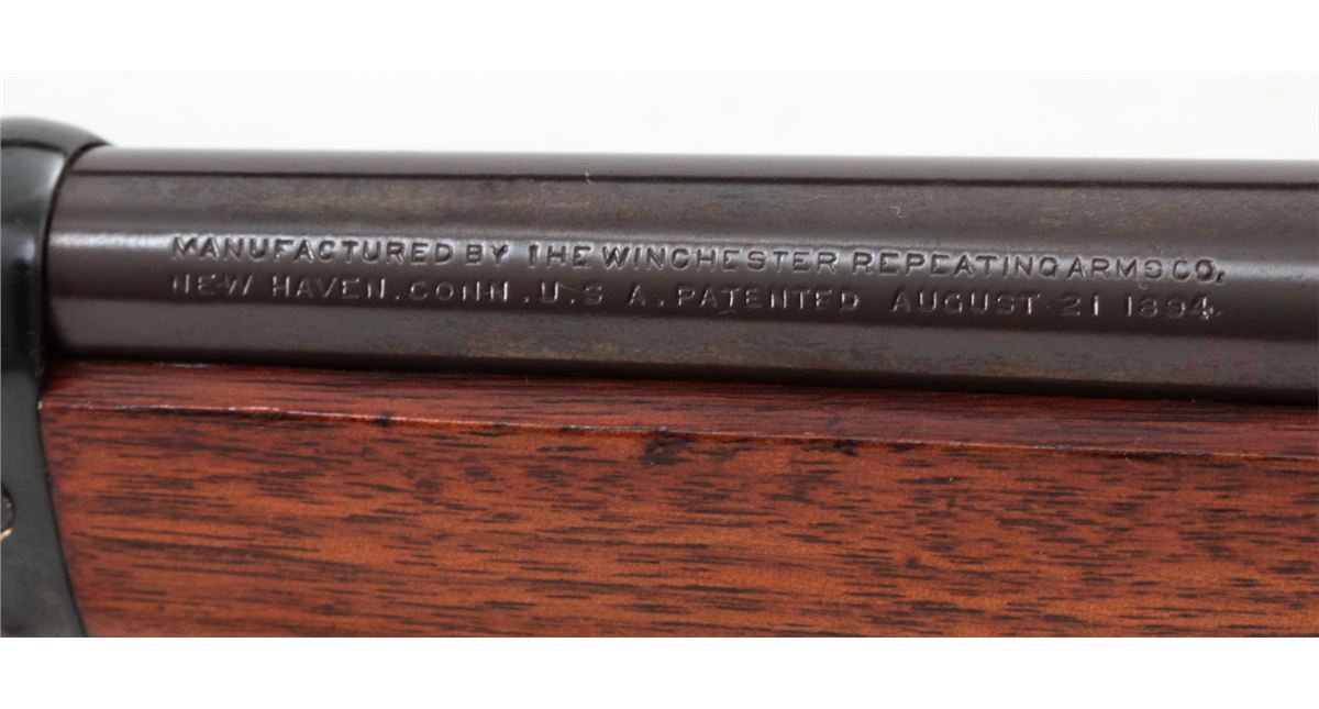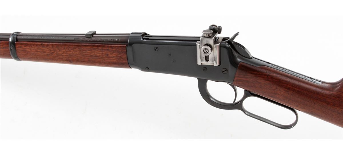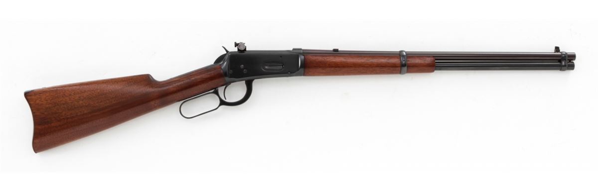 Winchester Model 94 Lever Action Carbine, #933254, .32 WS cal., 20'' barrel, blue finish, walnut stock and forend, with Lyman receiver sight. Mfg'd 1923. Condition is excellent as chemically reblued, retaining approx. 98% of a bright inky blue. Stock with additional coat of tung oil. Good action, fine bore. Est.: $400-$600. (C&R)