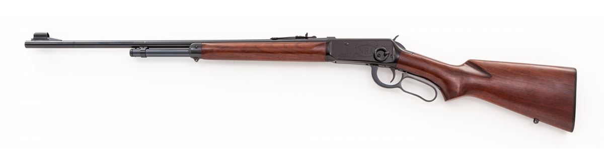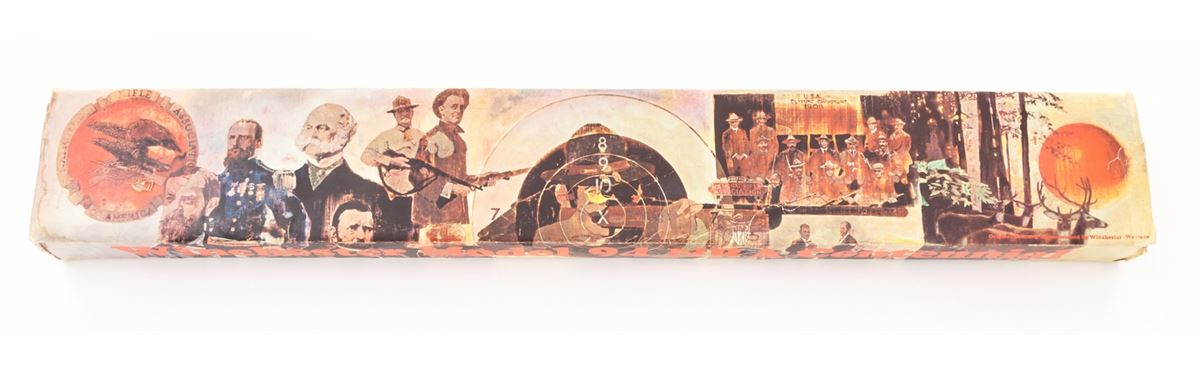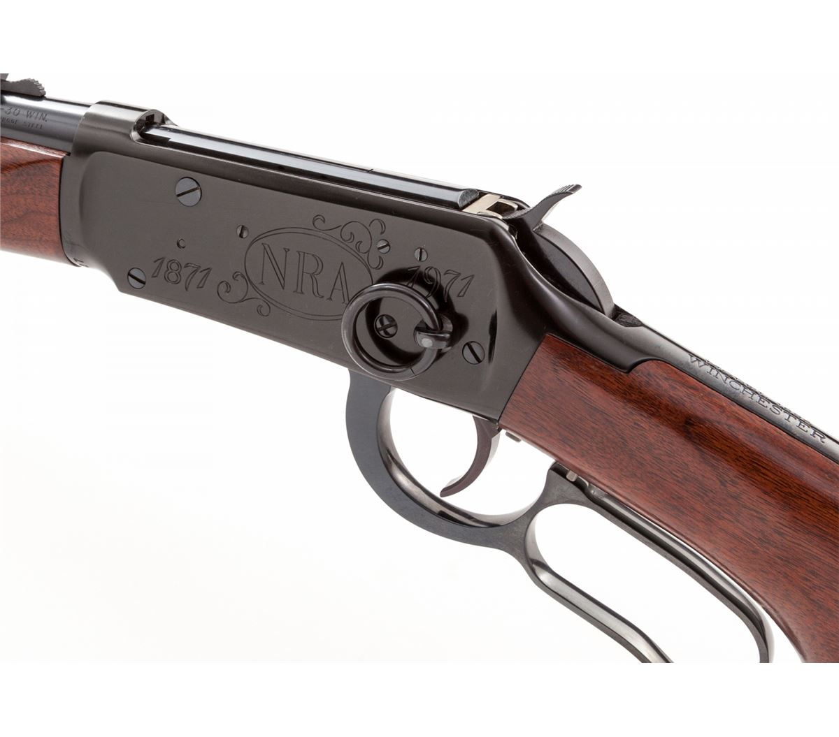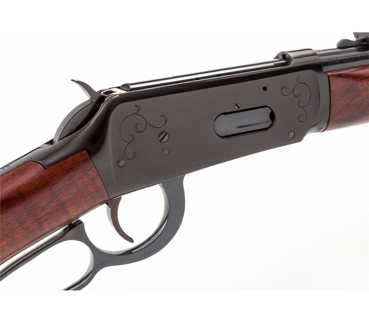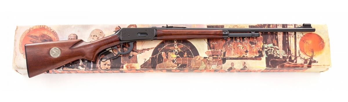 Winchester Model 94 NRA Centennial Lever Action Rifle, #NRA21427, .30-30 cal., 26'' barrel, blue finish, walnut stock inlaid with NRA commemorative medallion. Condition is excellent, appearing as new and unfired, in original box. Polychrome slipcover shows minor tears and wear to edges. Est.: $750-$1,000. (Modern)