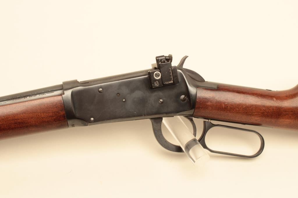 2461286 (made 1959); almost fine condition, 95-98% blue; wood is very good + with some minor use and storage marks; Williams receiver sight added. (C&R). Est.: $400-$800.