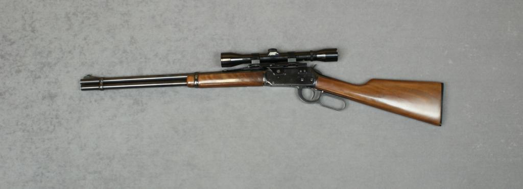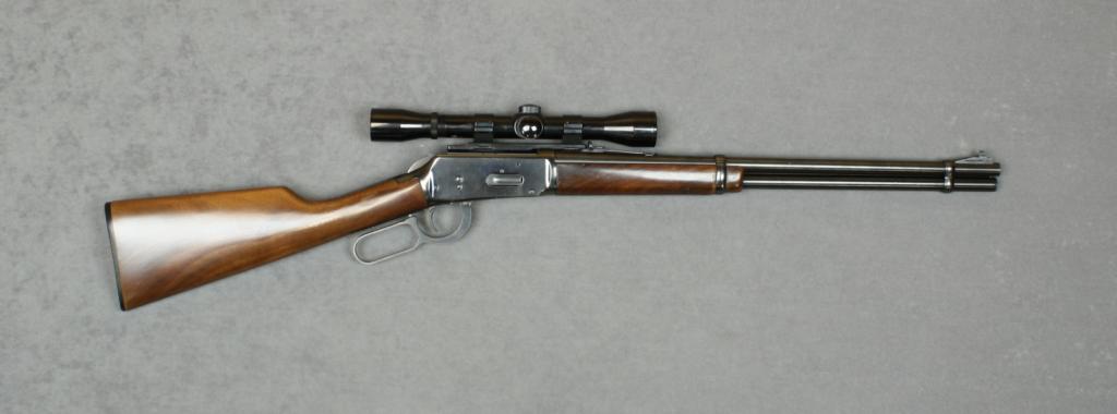 Winchester Model 94 lever action carbine, .32 Win Special cal., 20” barrel, re-blued finish, wood grips, #3751501. This gun is in overall good condition showing majority of its older re-blue, overall good bore, crispaction, good markings, very good wood stocks; mounted with a 4X Banner scope by Bushnell with clear optics. Est.: $200-$400.