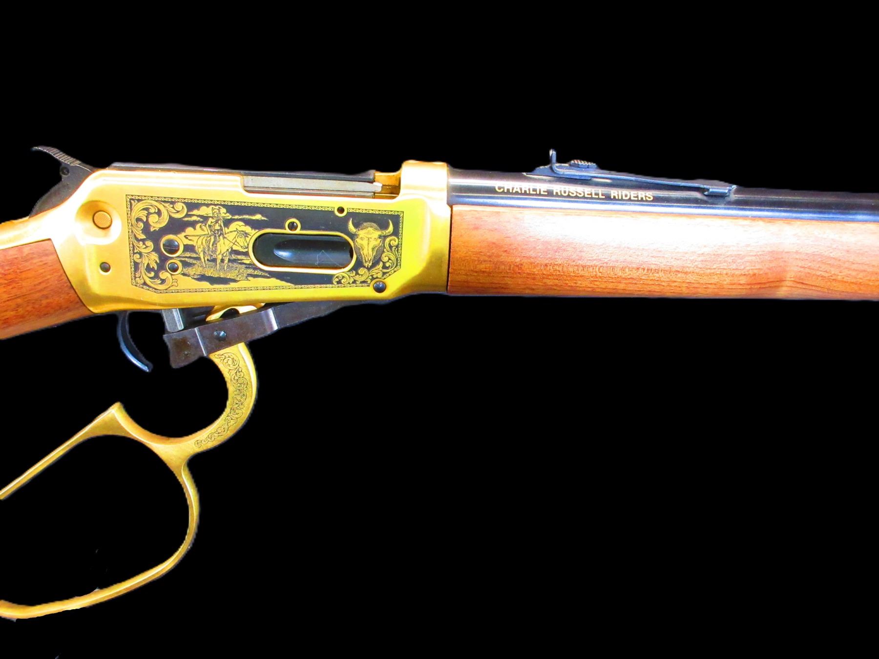 Winchester Model 94AE Lever Action Saddle Ring Trapper- Charlie Russell Riders Commemorative- CRR 10- .44 Mag- 16" Barrel- Big Loop- 24K Gold Overlay Receiver Engraved With Charlie Russell Paintings- Never Fired- No Box- #6006005T
