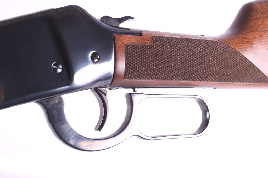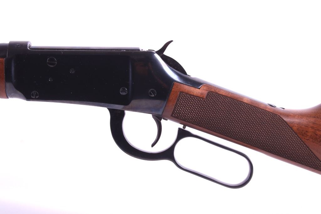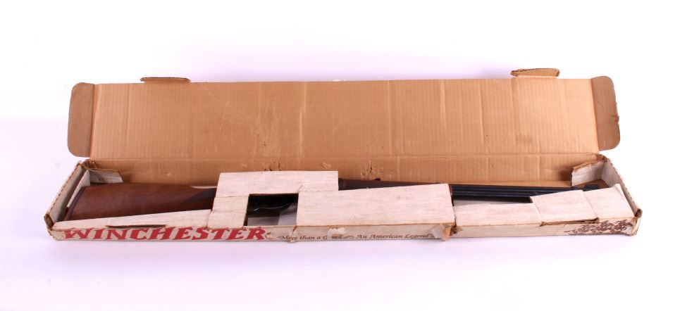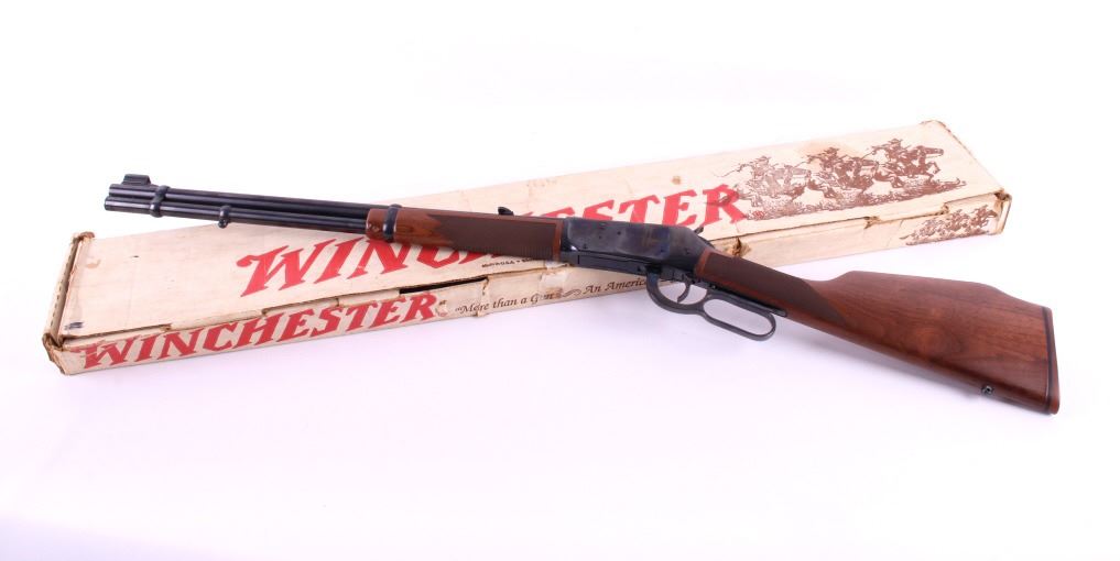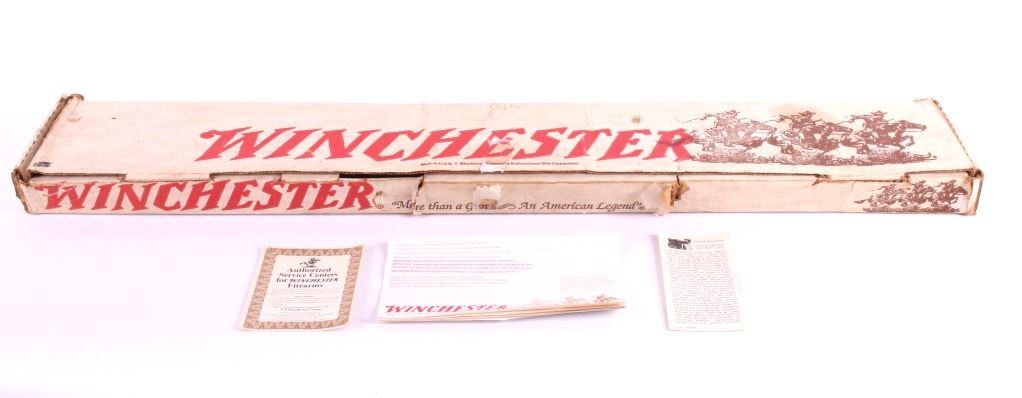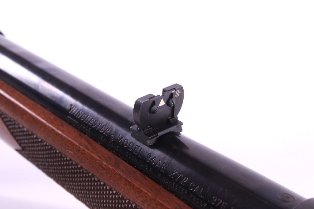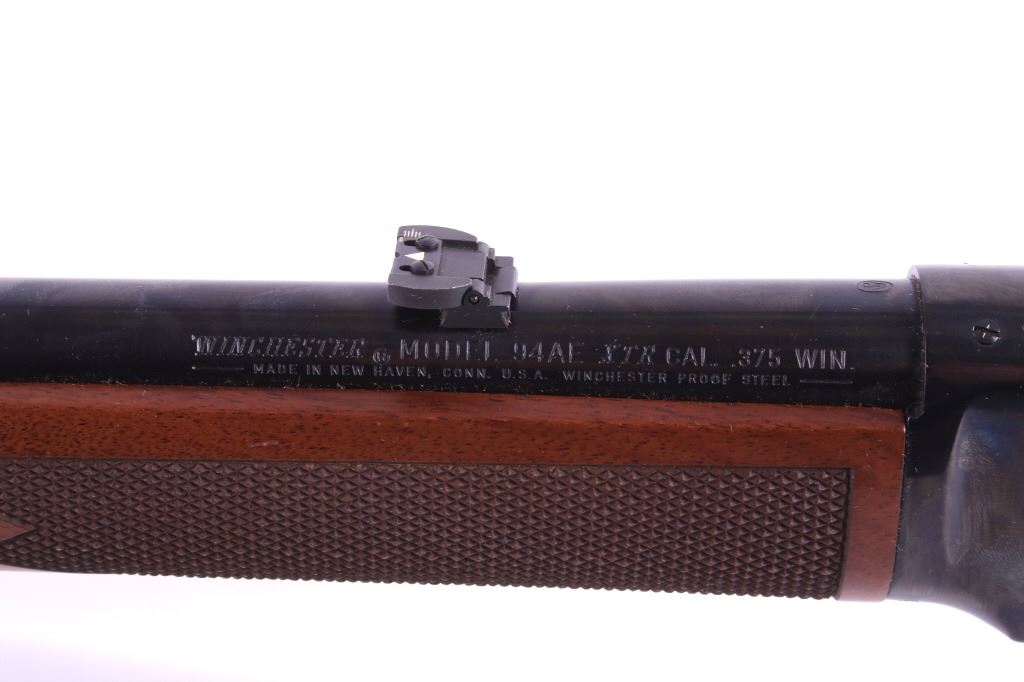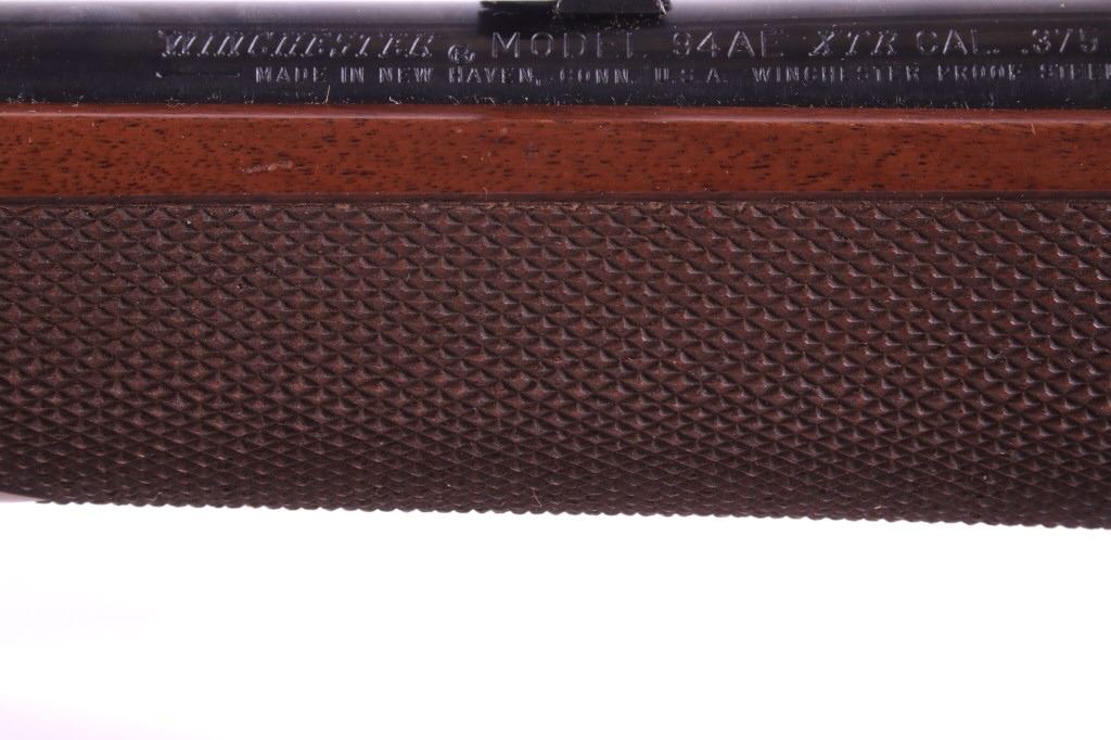 For your consideration is a Winchester 94AE XTR lever action rifle. This lever action carbine rifle has a 20" blue'd barrel and is chambered in .375 Win. Gorgeous straight grain walnut has sharp checkering on the fore grip and on the straight grip stock. The rifle is marked reading; "-MADE in New Haven, CT U.S.A.-Winchester Proof Steel " and has a hard rubber butt plate stamped with the Winchester seal. The gun shows little use. Bluing is strong and the only noticeable damage occurs at the tip of the fore grip. The rifle comes with the original box. This rifle qualifies as a Curio & Relic Long Gun, and requires FFL Transfer or NICS Background Check. Serial Number: AE17055.