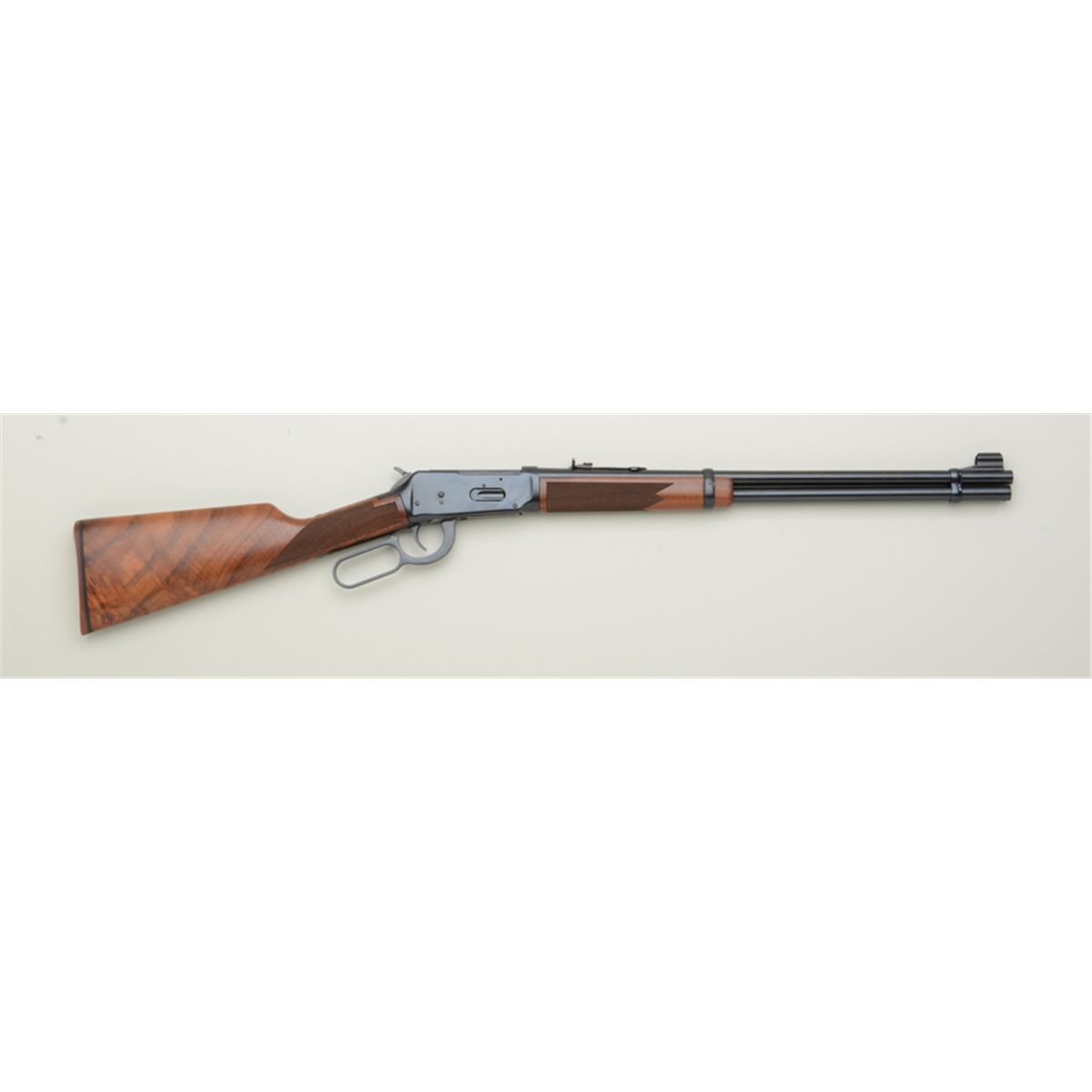 Winchester Model 94AE lever action carbine, 7-30 Waters cal., 20” barrel, blue finish, checkered wood stocks, #5572284. This gun is in overall fine to excellent condition showing approx. 98% original finish, finebore, action, markings and wood stocks. Est.: $300-$600.