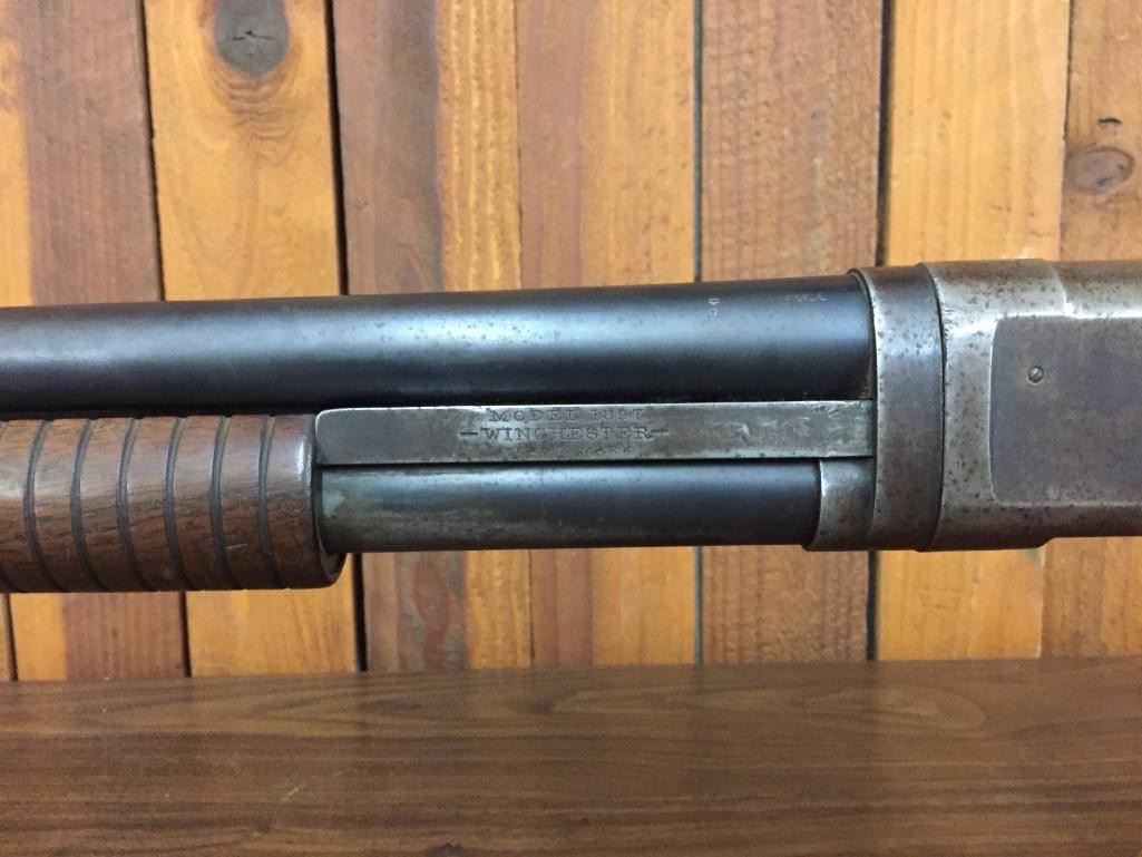 For your consideration we offer for sale this Winchester Model 1897 shotgun. It is a 12 gauge full choke. It is in average condition for its age. Shows moderate use, but not abuse. Maker: Winchester. Serial No. 440057. Size: Barrel measures 30" Age: Circa 1909. Please look closely at the pictures - they are an important part of our description. Shipping: There will be a $15 handling / packaging fee for shipping this lot. The actual cost of postage will be added on top of that. *****This firearm requires an FFL Transfer*****