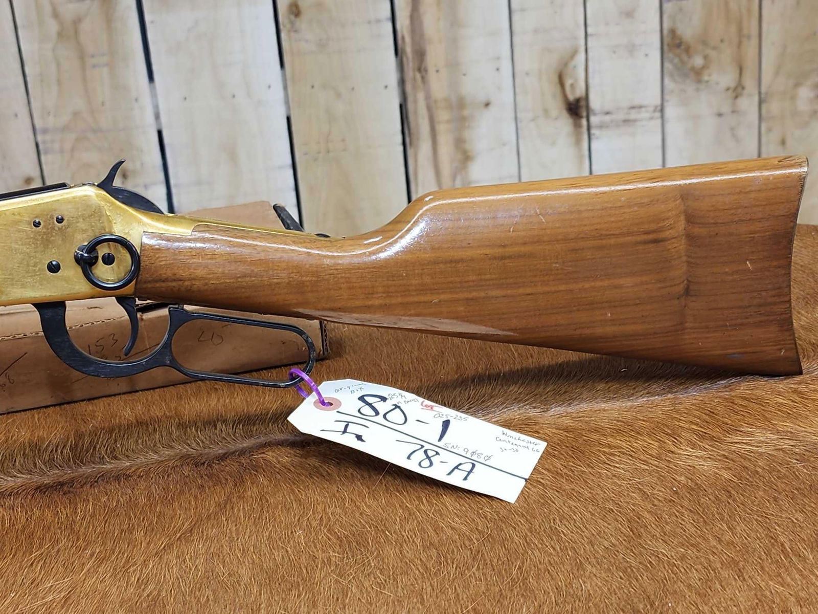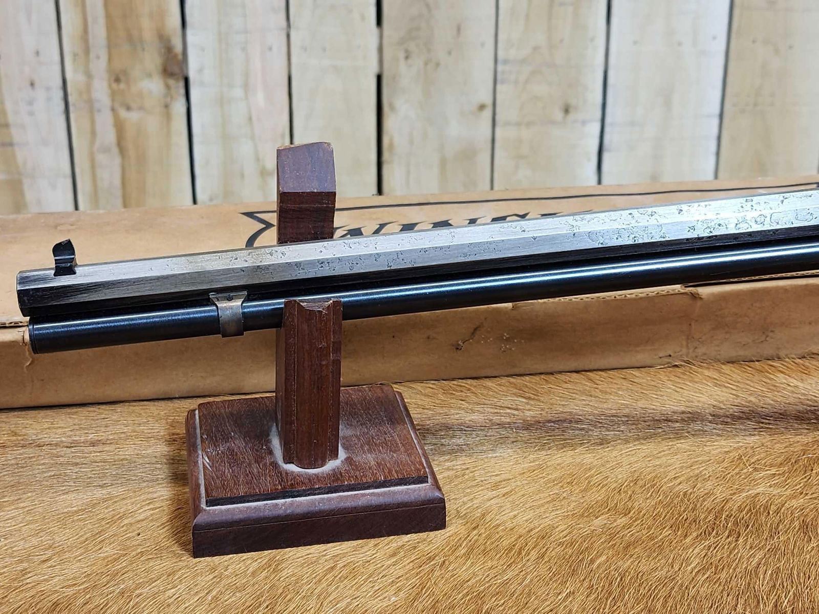 80.1 Despite the barrels appearance this gun has seen little use 26" octagon barrel shiny bore good rifling with original box comes with 56 rounds of Ammunition SN 9080