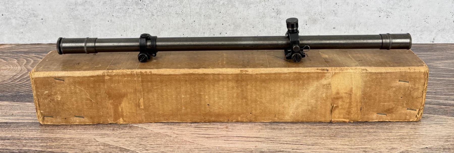 Comes with original box. Standard Crosshair Reticle. 18 1/4" long. These scopes were manufactured from 1939 to 1945.