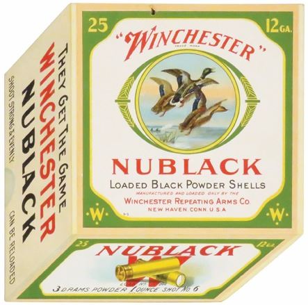 Winchester Nublack Die Cut Carboard String Hanging Sign. Depicting shell box with duck in flight. Excellent condition. 8 1/4 X 8 3/8 inches.
