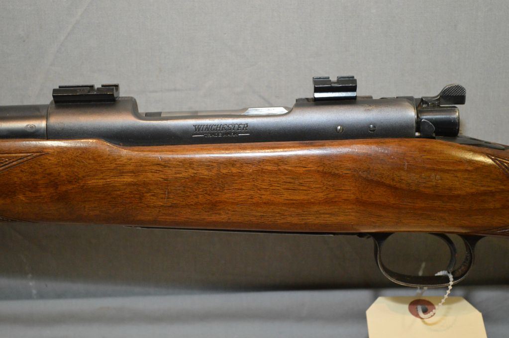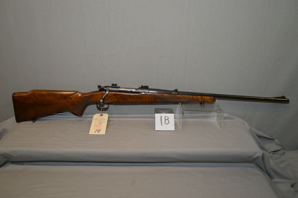 Winchester Pre 64 Model 70 .22 Hornet cal Bolt Action Rifle w/ 24" bbl [ blue finish, barrel sights, also fitted w/ scope bases, good walnut checkered pistol grip stock w/ metal butt plate, sling swivels , shows some fading mostly on floor plate & trigger guard, Circa 1940 ] Ser # 30031
