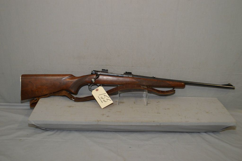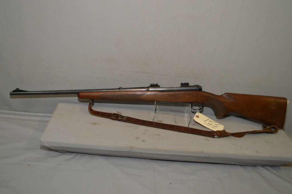 Winchester Pre 64 Model 70 Featherweight .30 - 06 Sprg Cal Bolt Action Rifle w/ 22" bbl [ blued finish starting to fade in carry areas, barrel sights, also fitted w/ Weaver bases, good checkerd pistol grip stock & forend with checkered metal butt plate, c/w leather sling , Circa 1955 ] Ser # 336015