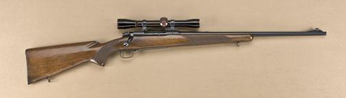 Winchester Pre-64 model 70 in .270 Winchester caliber, factory 22” barrel, standard configuration with factory sling swivels, rear sight dovetail is plugged. Featherweight variation. Front sight cover removed,mounted with Leupold scope on Redfield bases in original factory tap holes. The rifle remains in very good used condition showing 80-90% original blue, thinning at the edges and floorplate. Stock is good to very goodwith some minor storage marks, handling, and normal use. The action is good, the bore is very good plus. A classic hunting rifle in a desirable featherweight variation. Serial #389399. Est: $800 - $1,600
