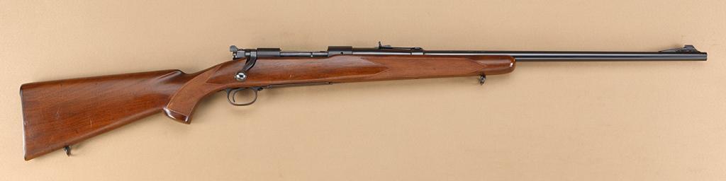 Winchester Pre-64 model 70 rifle in .257 Roberts caliber, fine to near excellent original condition, serial #32210. The rifle retains 95-98% original finish, some very slight losses at edges, original rear sightis retained, front sight cover is missing. Stock near excellent with just minimal handling, storage marks, slight aging. Action is crisp, bore excellent. A collector’s grade model 70 in hard to find caliber andcondition. Est: $1,500 - $3,000