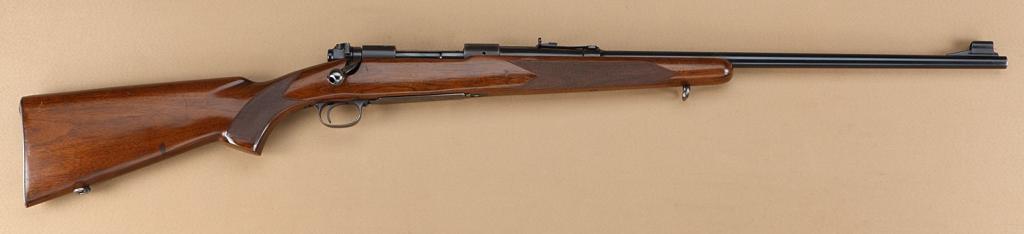 Winchester Pre-65 model 70 rifle in .243 Win caliber, serial #363952. The rifle remains in very good original condition showing 85-95% original finish, showing slight marks on receiver from mounting the scope. Stocks aregood to very good with some minor marks, loss of finish, evidence of handling and use. Original rear sight is retained and front sight cover also retained. Factory retained sling swivel, milled steel buttplate. Goodaction, fine bore. Est: $700 - $1,400