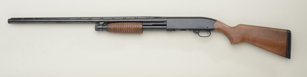 Winchester Ranger Model 120 pump action shotgun, 12 gauge, for 2-3/4” & 3” shells, 28” ventilated rib barrel, black finish, wood stocks, #L1701279. This gun is in overall fine condition with a crisp action, sharpmarkings, bore should clean to fine; wood stocks are fine with Winchester hard rubber butt pad. Est.: $225-$350.