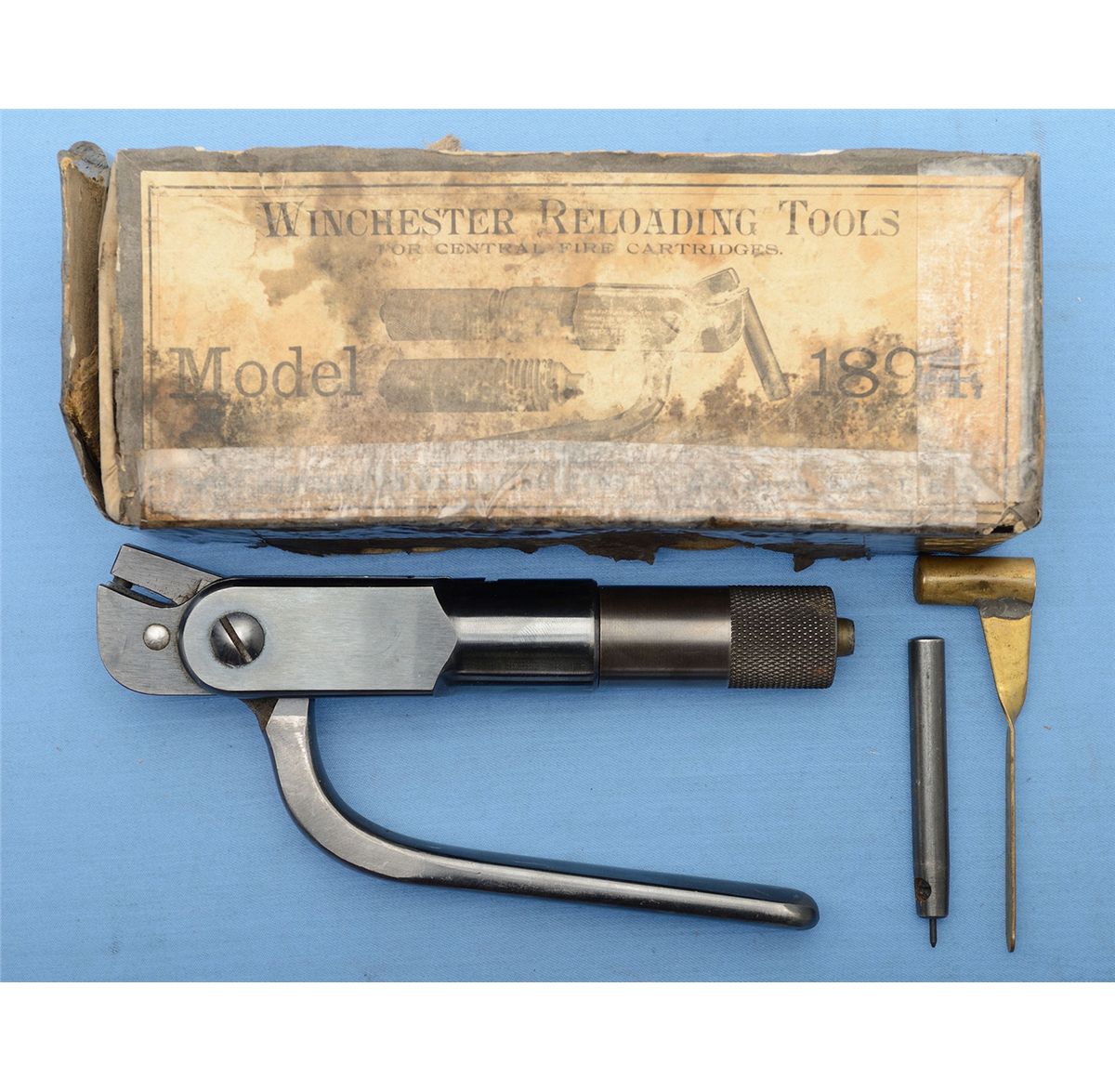 Winchester Model 1894 .38-55 reloading tool with original box. CONDITION: Excellent, box is poor.