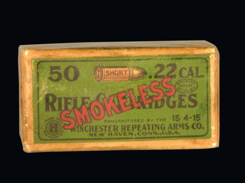 Winchester Repeating Arms, full box of 22 cal smokeless rifle cartridges. Excellent condition.