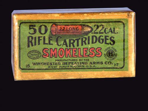 Winchester Repeating Arms, full box of 22 cal. Smokeless rifle cartridges. Excellent condition.
