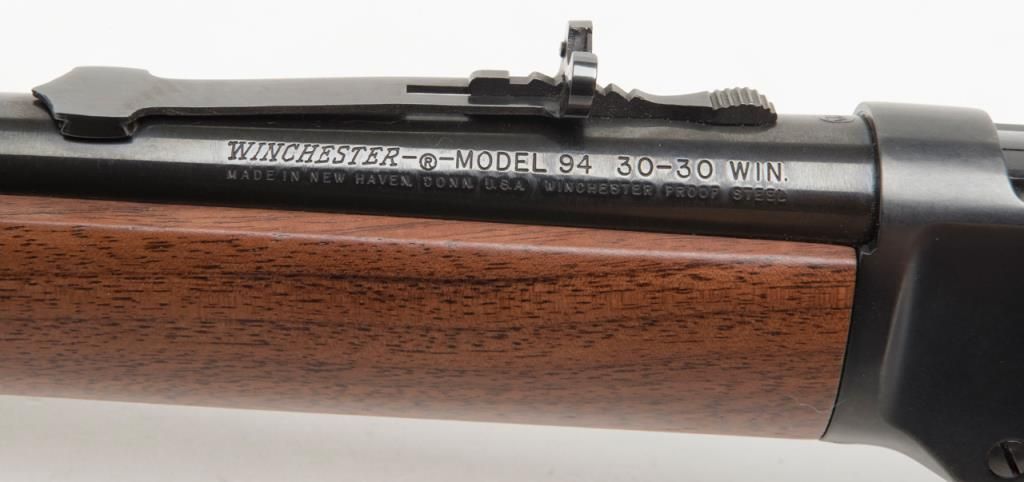 Winchester Repeating Arms Company marked Trappers model special edition carbine with 16” barrel in .30-30 caliber, serial number 4993037. Excellent condition in original box and shows no evidence of use just minor handling and storage. New Havenmanufacture and rapidly increasing in value. 99% plus Est.: $700-$1400