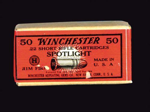 Winchester Spotlight Cartridges, full box of 22 cal short rifle. Unopened, near mint condition.