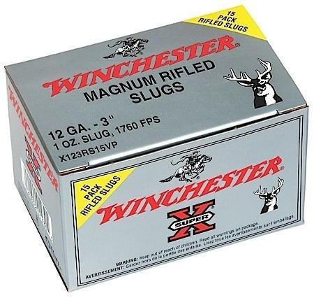 For superior slug performance, you can't beat the stopping power of Winchester Super-X slugs. Specifically designed to deliver maximum accuracy and tremendous energy deposit in shotguns with smooth bores it can be used in rifled choke tube barrels or fully rifled barrels. Product Specifications:X123RS15VP Gauge:12 Gauge Type:Rifled Lead Length:3" Ounces:1 oz Shot Size:Slug Muzzle Velocity:1760 fps Rounds Per Box:15 Boxes Per Case:10 Application:Hunting or defense
