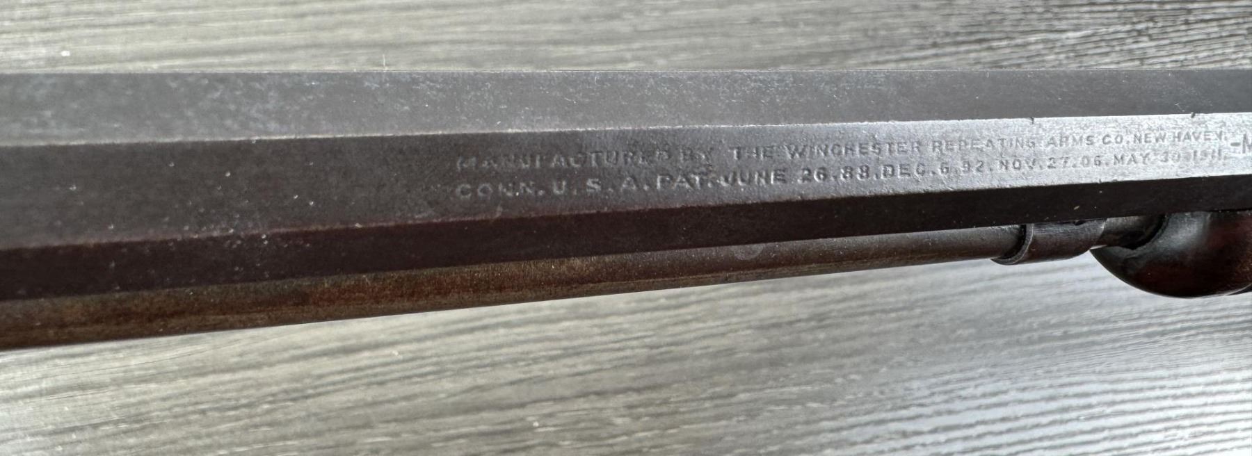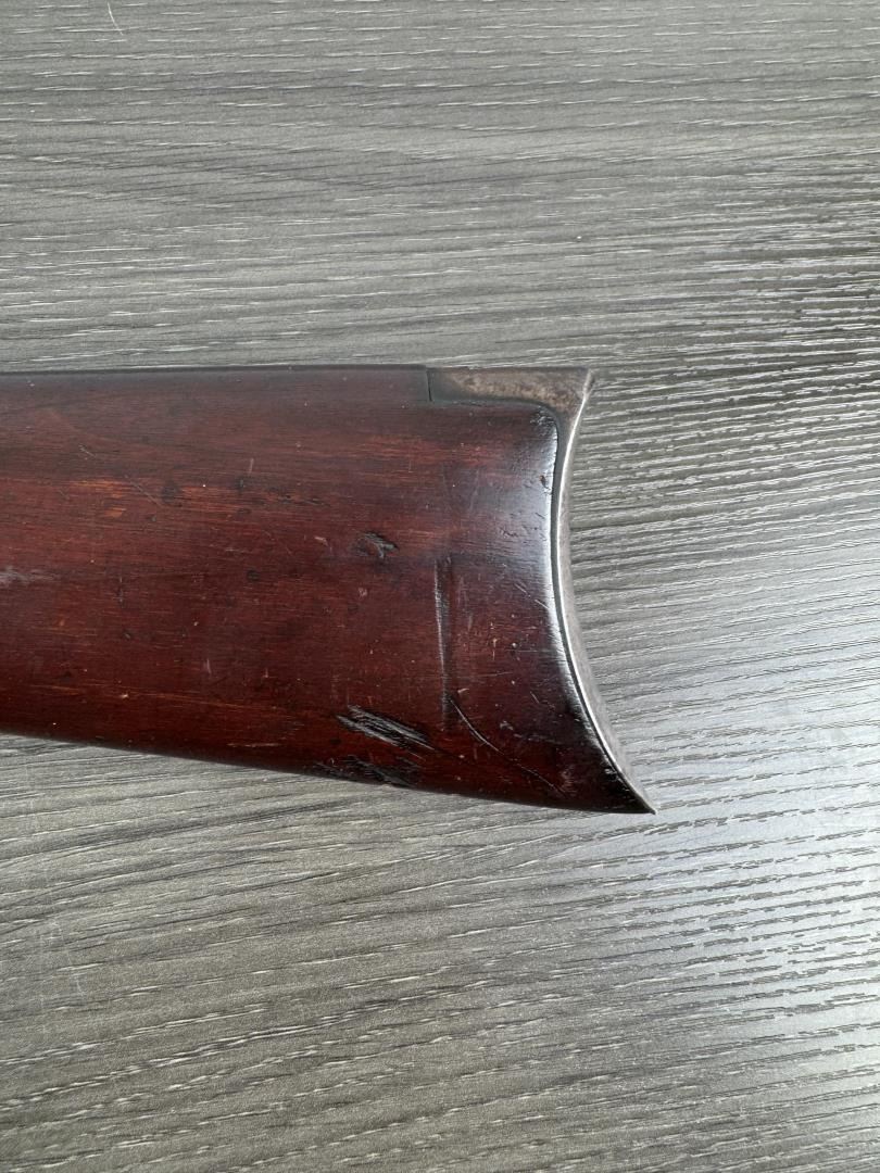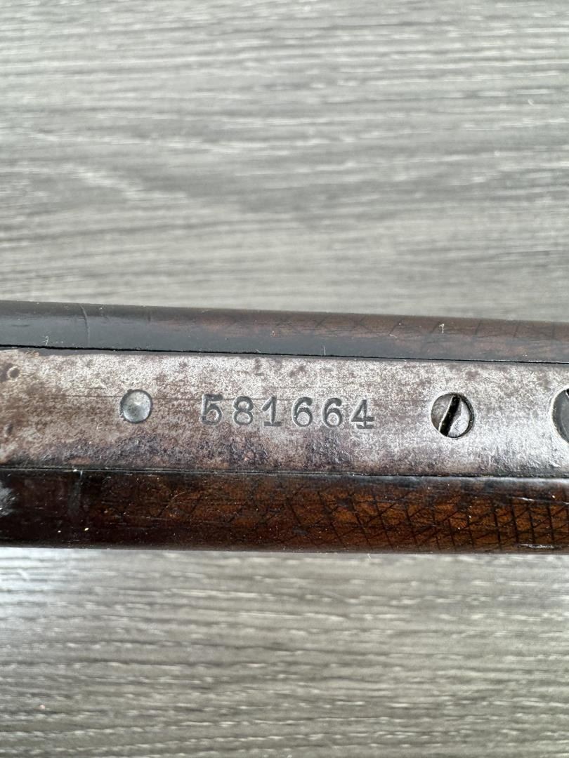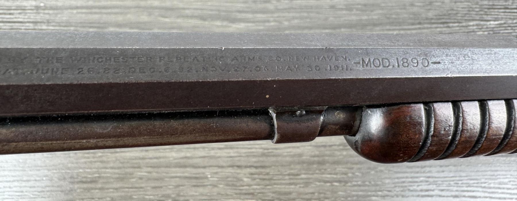 Cal. 22 Short. 24" octagon barrel. Bead front sight. D. W. King sporting rear sight missing elevator. Tubular mag. Grooved slide handle w/ straight grip walnut stock having crescent steel buttplate. Mfg. 1917. FFL Transfer Required, C&R not accepted.