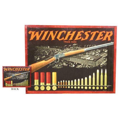 Winchester tin flange sign. Depicts the Winchester factory, two sided. Near mint condition. 18 X 13 1/2 inches.