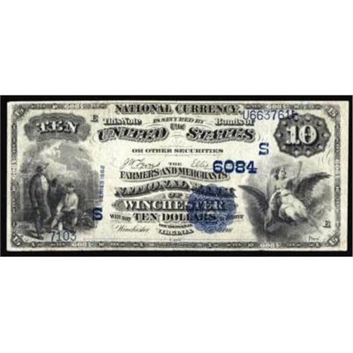 Winchester, VA. $10 1882 Value Back. Fr. 577. The Farmers and Merchants NB. Charter #(S)6084. Fine.