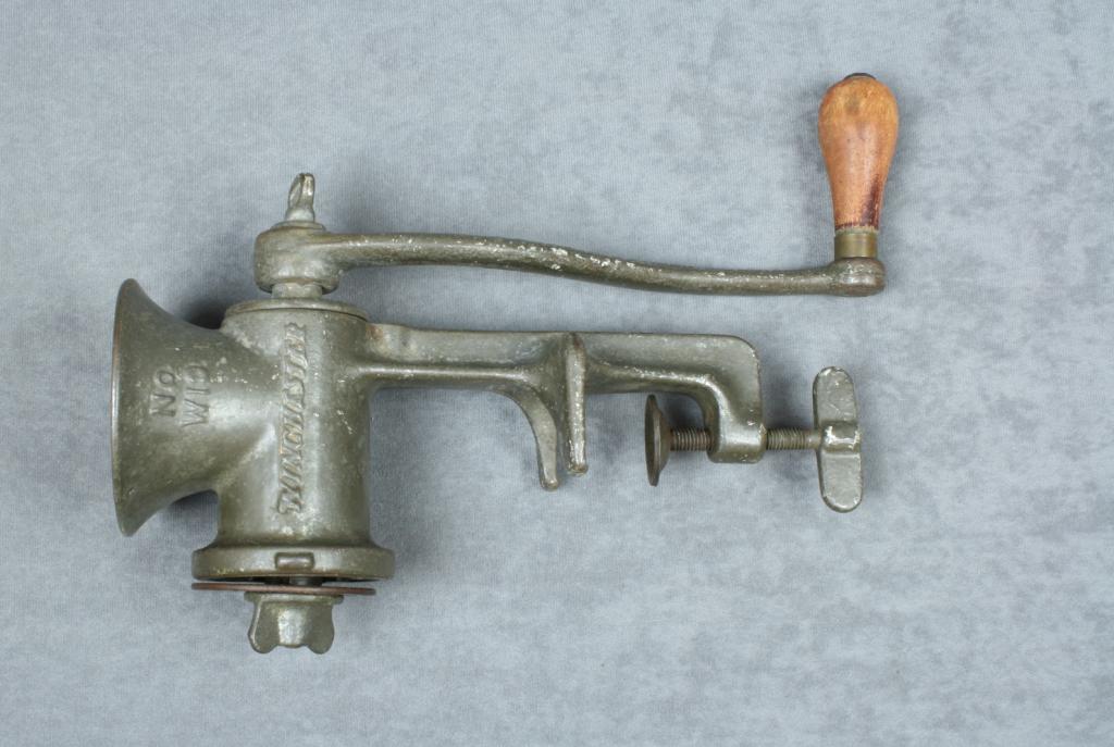 Winchester #W12 food chopper with handle and set screw, shows Winchester trademark on handle and body, good condition. Est: $100 - $300